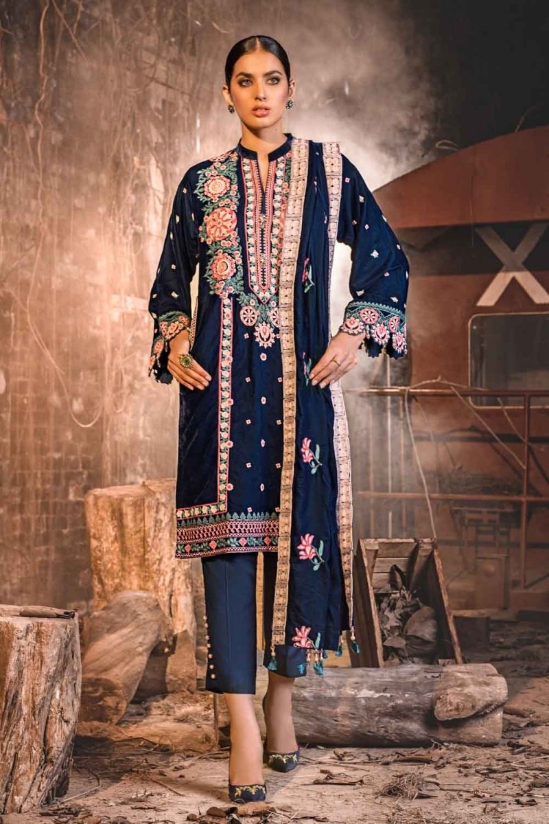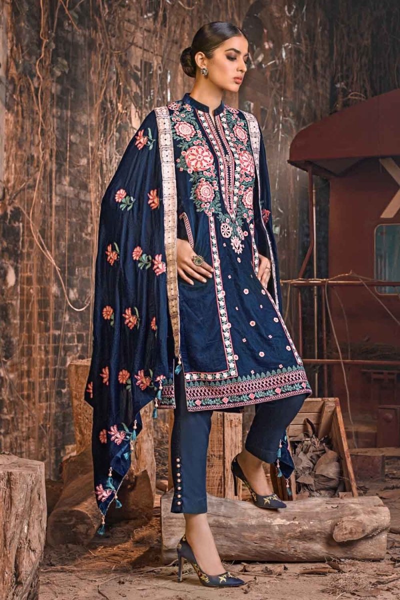 Gul Ahmed 3PC Unstitched Velvet Embroidered Suit WV-12002