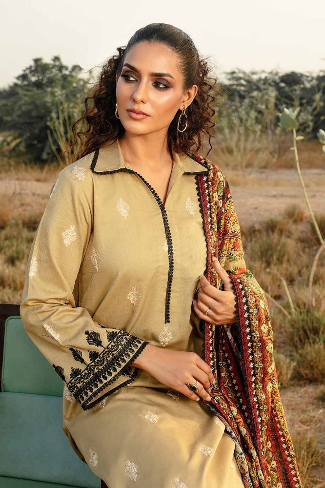 Gul Ahmed 3PC Digital Printed Embroidered Corduroy Unstitched Suit with Digital Printed Cotton Net Dupatta CD-32005