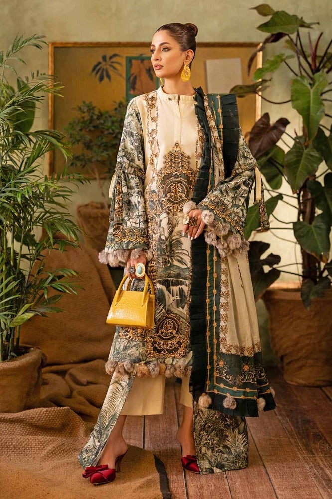 2. Unstitched suits include fabric and patches only as mentioned in the description above (not Embellishments e.g. tassels etc).