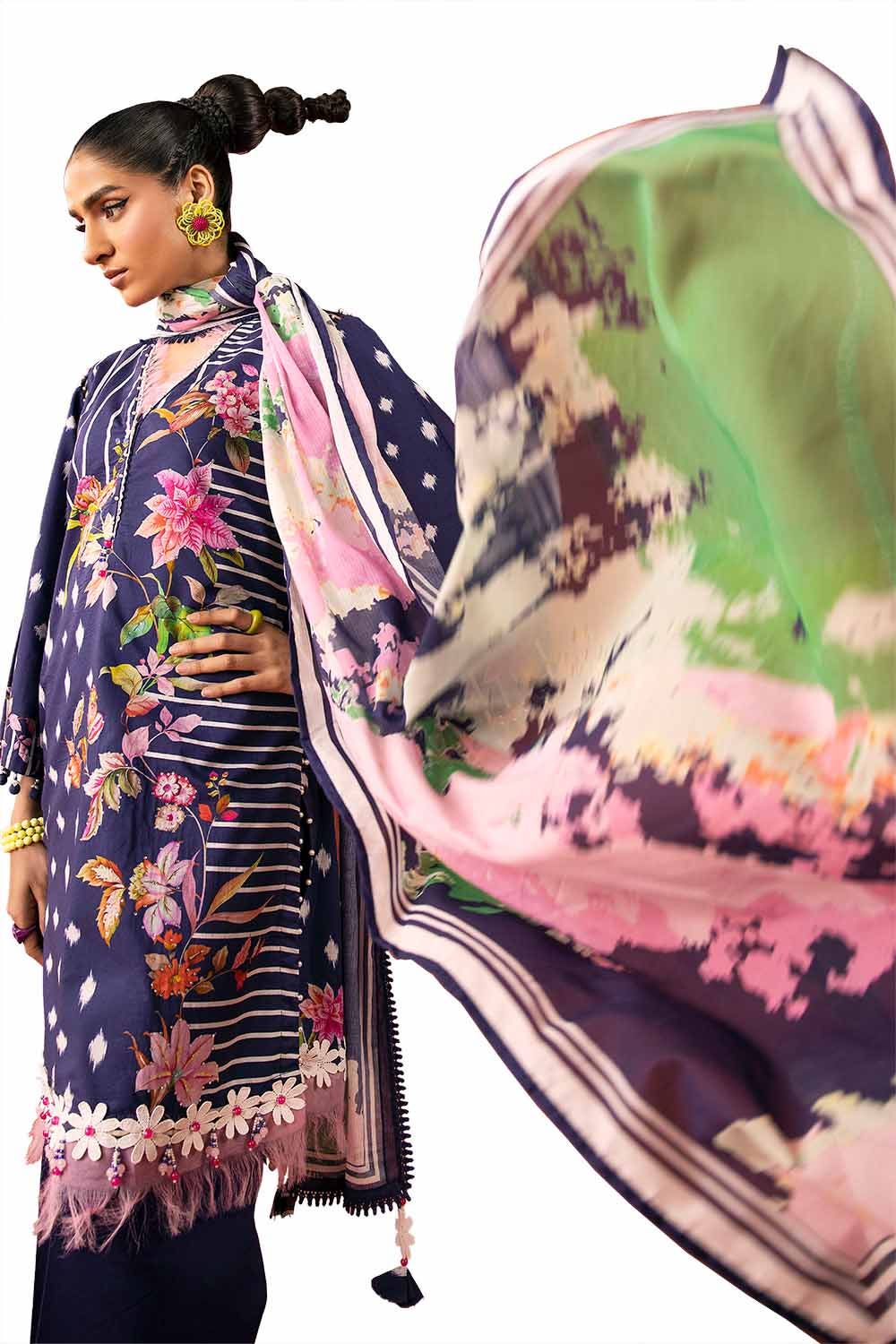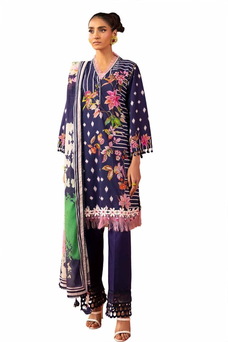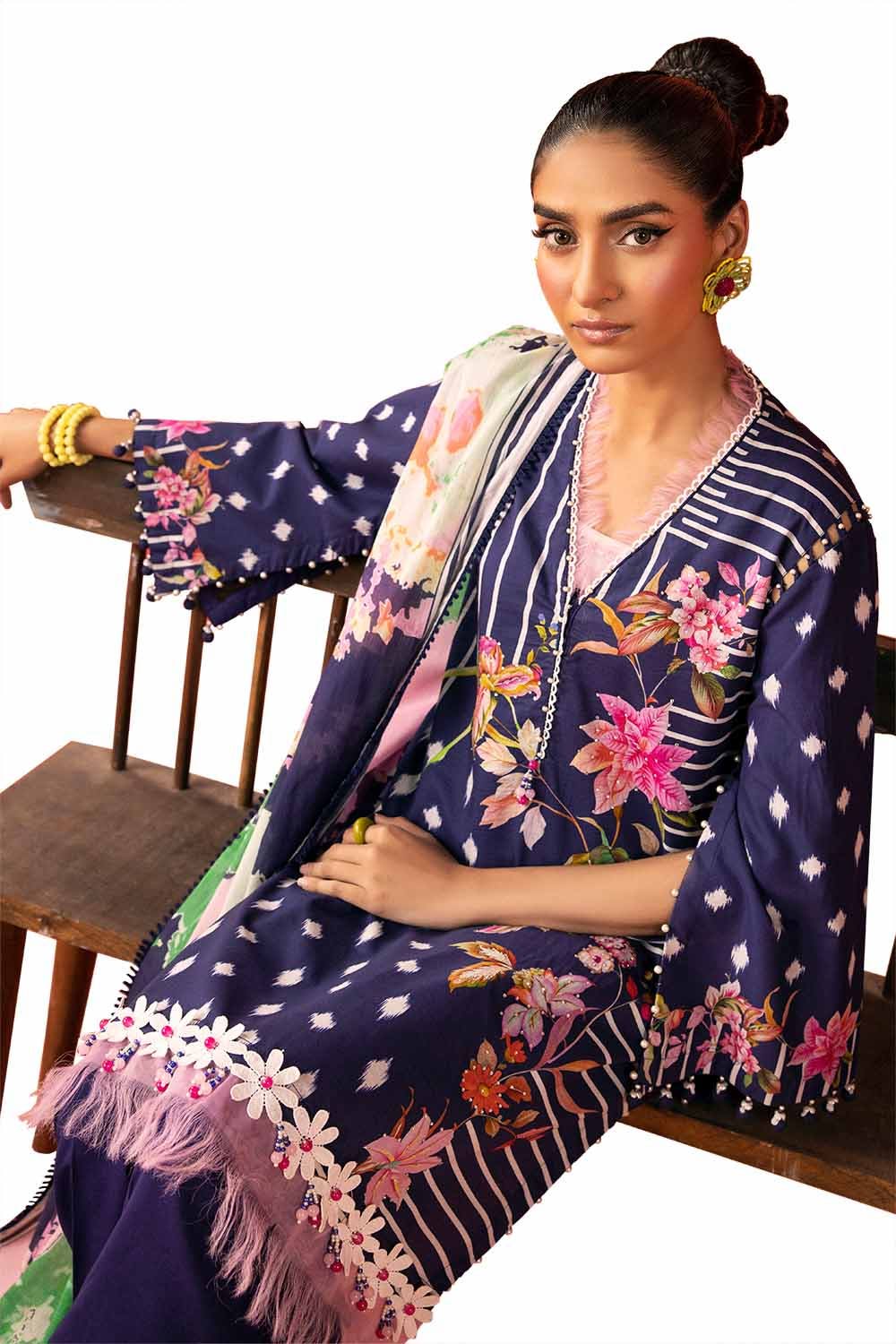 2. Unstitched suits include fabric and patches only as mentioned in the description above (not Embellishments e.g. tassels etc).