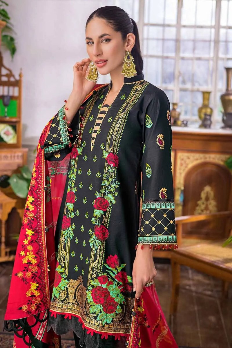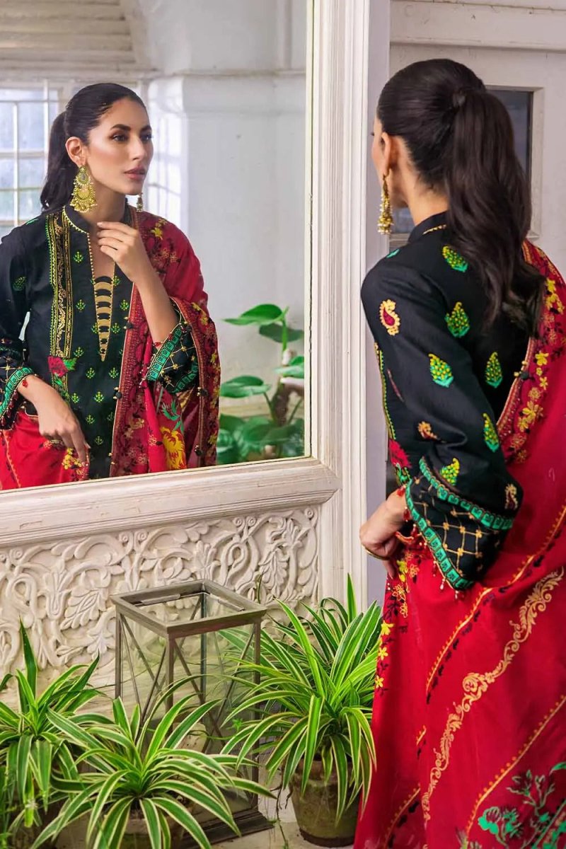 Gul Ahmed 3PC Unstitched Embroidered Gold and Lacquer Printed Suit CL-22094 A