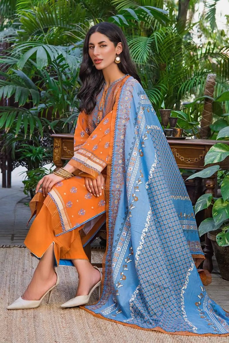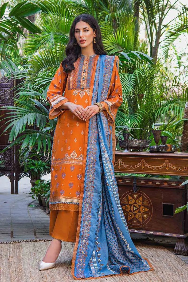 Gul Ahmed 3PC Unstitched Embroidered Gold and Lacquer Printed Suit CL-22095 B