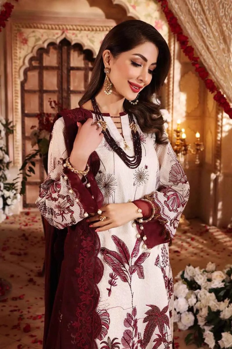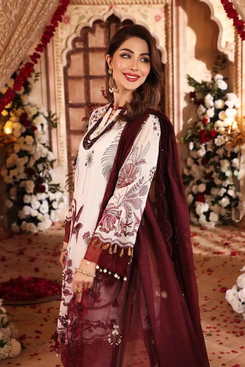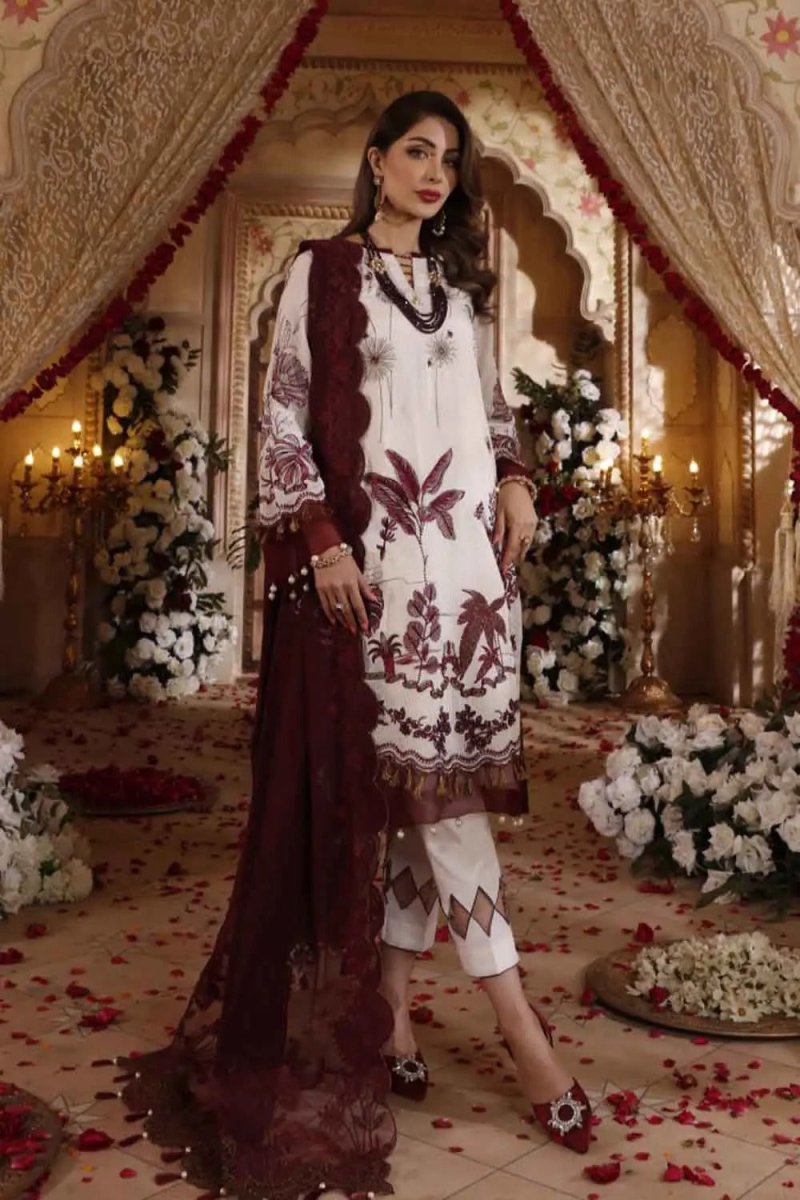 Gul Ahmed 3PC Unstitched Embroidered Luxury Cotton Suit with Glitter & Lacquer Printed Khaddi Net Dupatta FE-22008