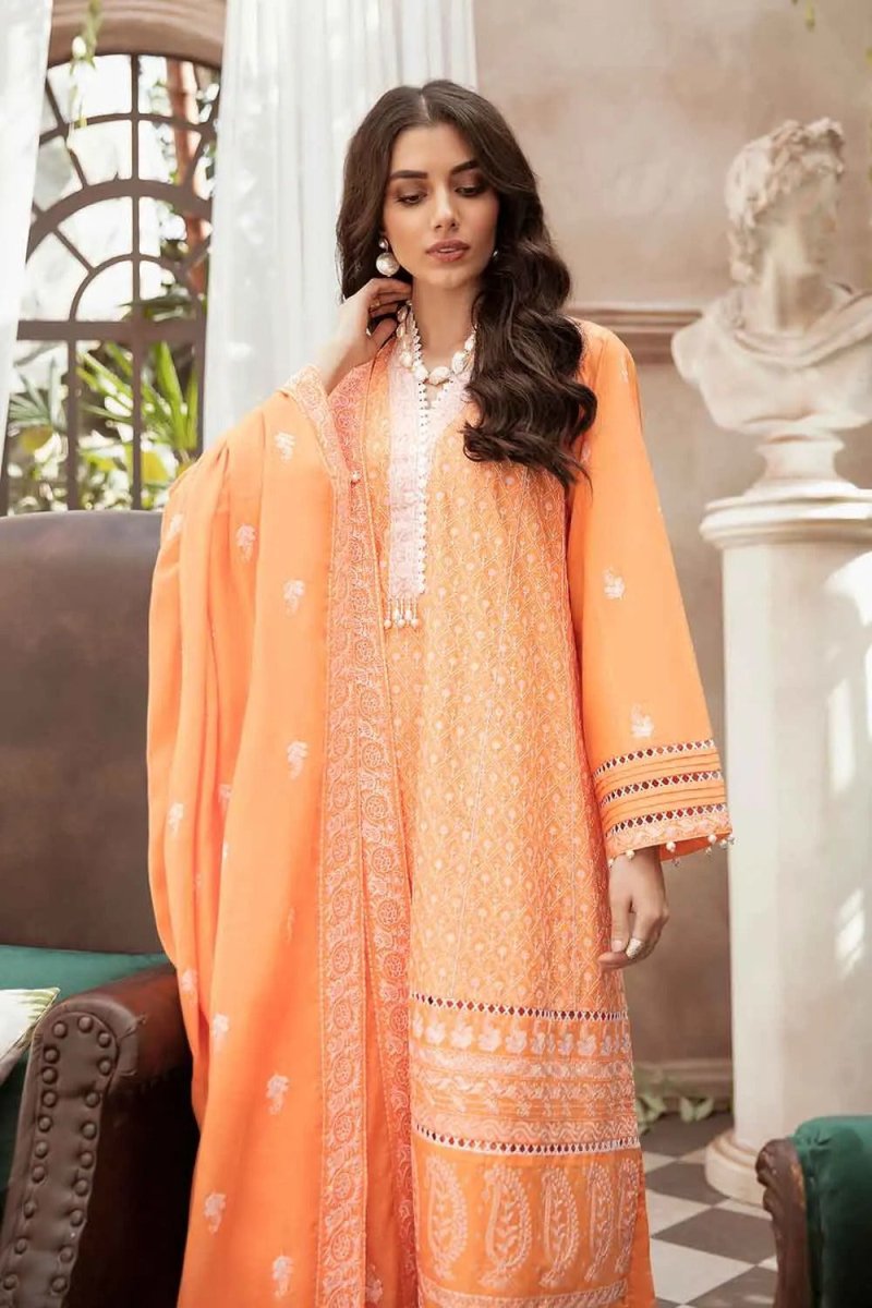 Gul Ahmed 3PC Unstitched Embroidered Yarn Dyed Suit with Cotton Net Dupatta FE-12050