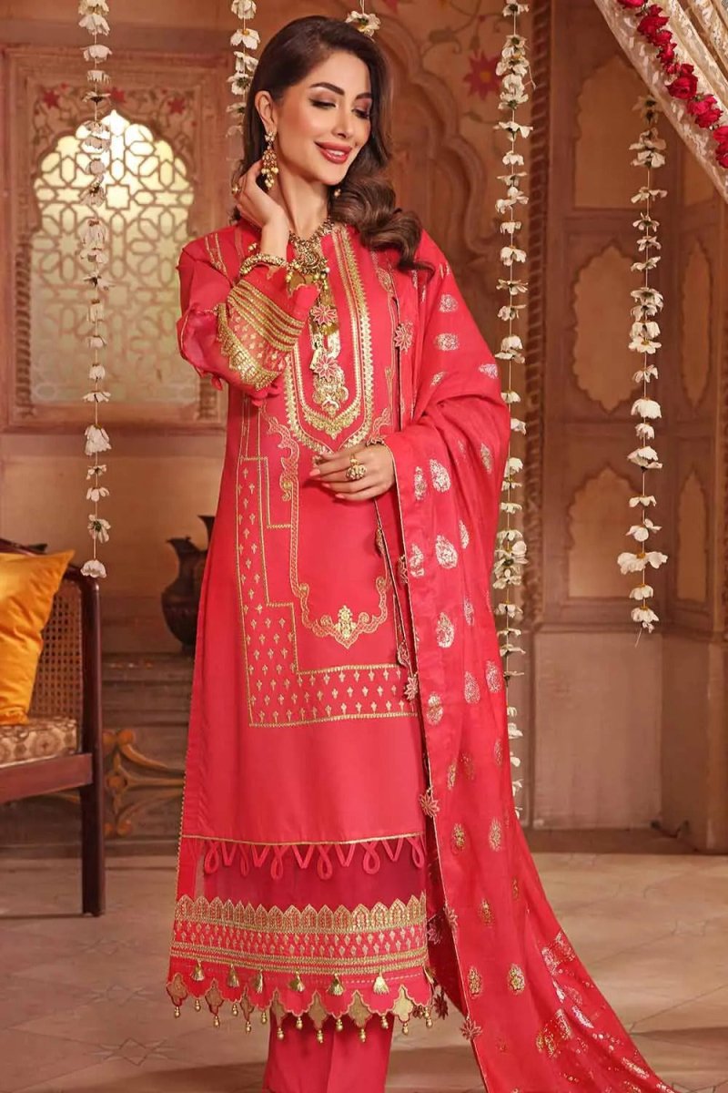 Gul Ahmed 3PC Unstitched Lawn Embroidered Suit with Jacquard Dupatta FE-12029