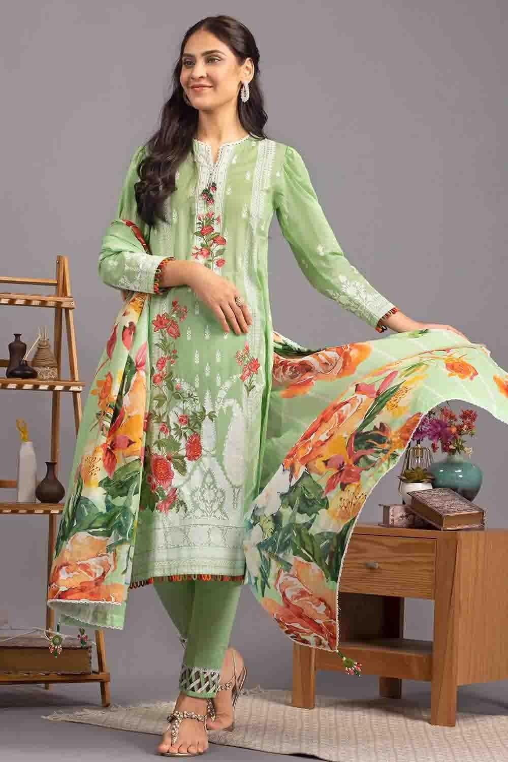 Gul Ahmed 3PC Unstitched Lawn Embroidered Suit with Printed Dupatta DN-22086