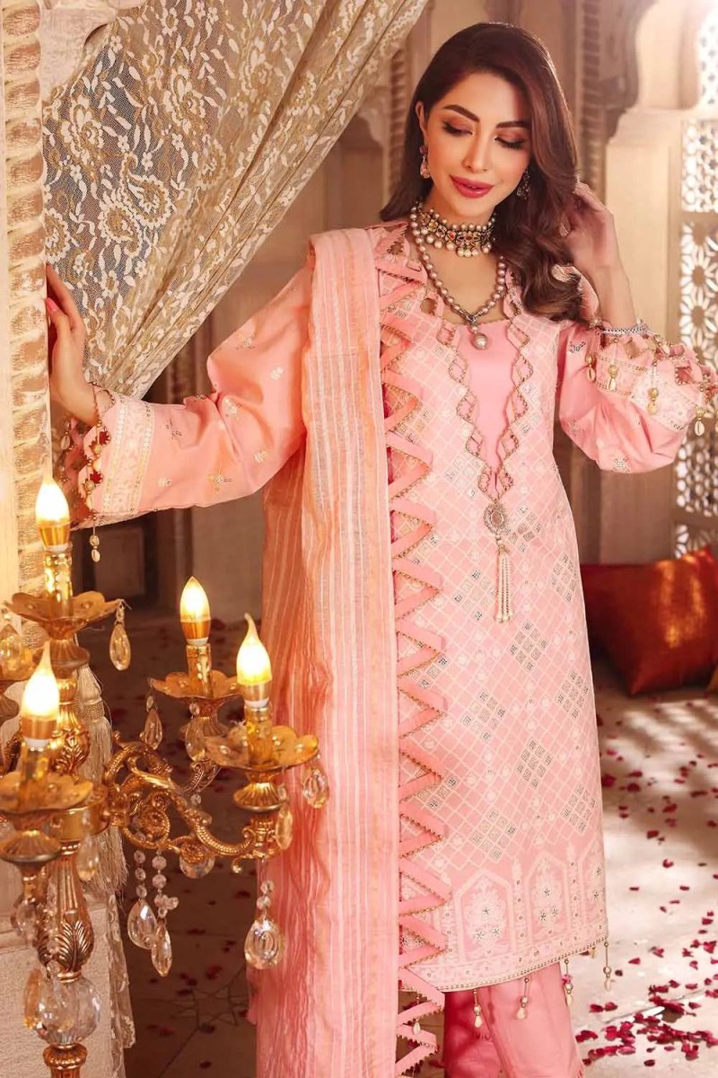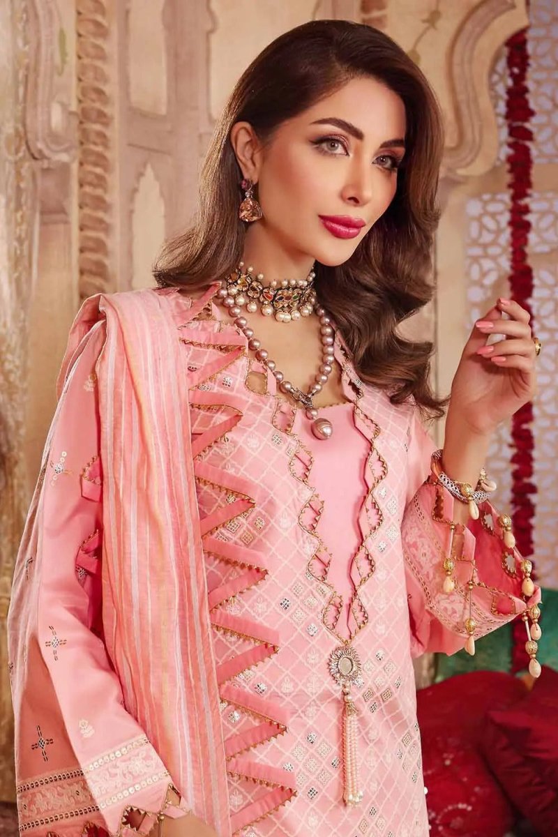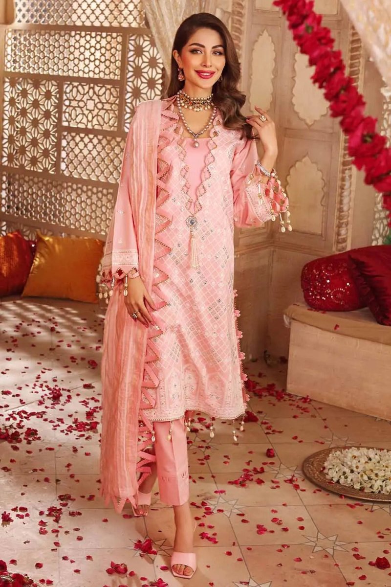 - Embroidered Lawn Front with Foil & Sequins, Dyed Lawn Back, Embroidered Lawn Sleeves with Foil & Sequins – 3.15 meters