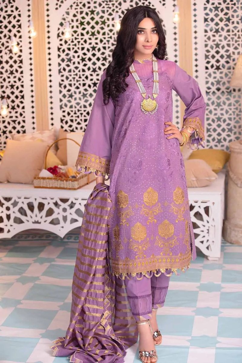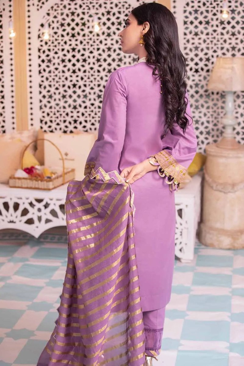 Gul Ahmed 3PC Unstitched Lawn Embroidered Suit with Zari Stripe Dupatta FE-22002