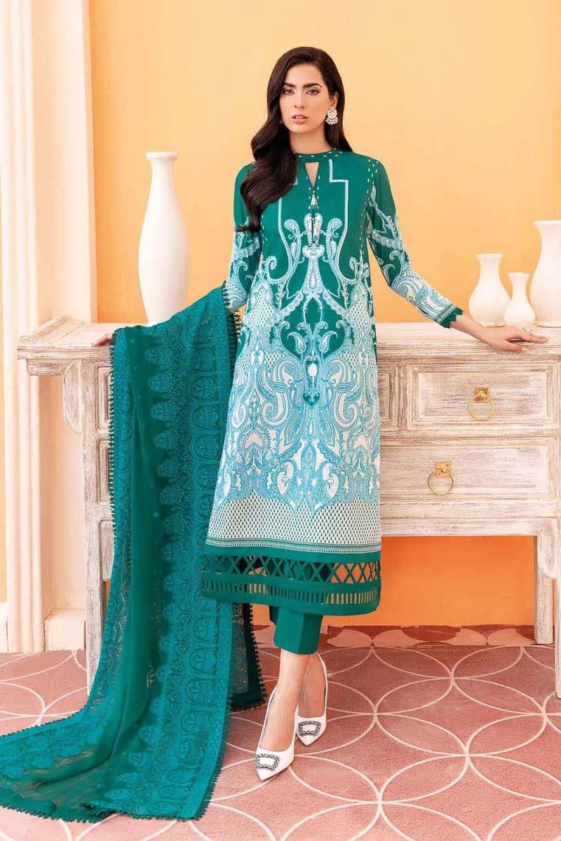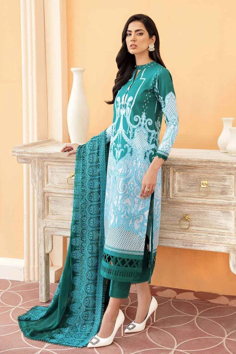 Gul Ahmed 3PC Unstitched Printed Lawn Suit With Embroidered Chiffon Dupatta PM-22020