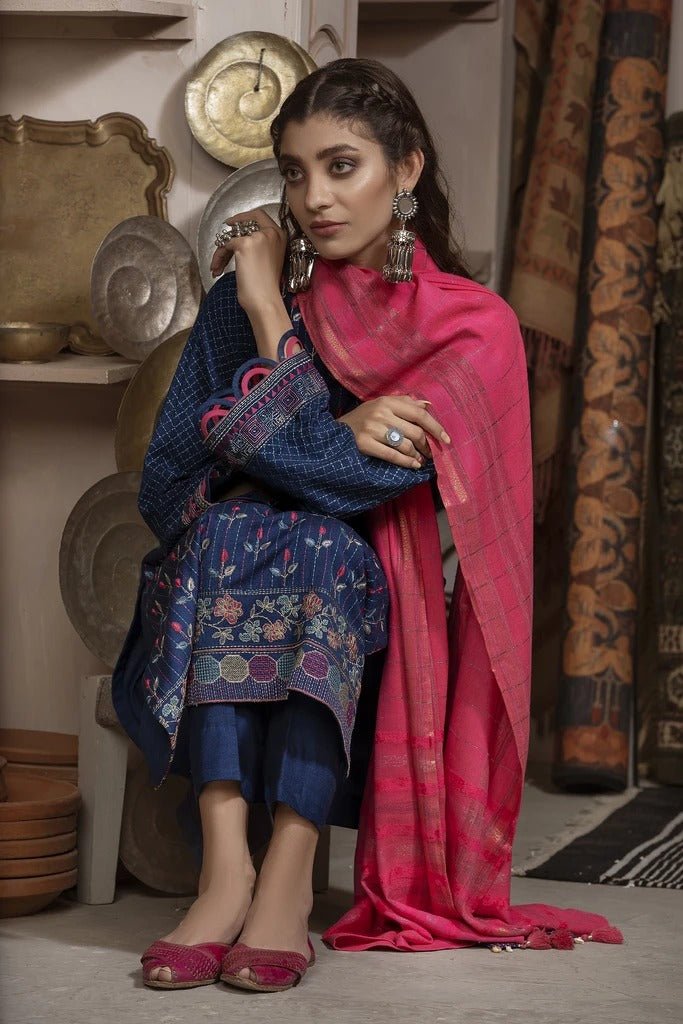 Lakhany 03 Piece Unstitched Embroidered Fancy Slub Suit WEC-5025