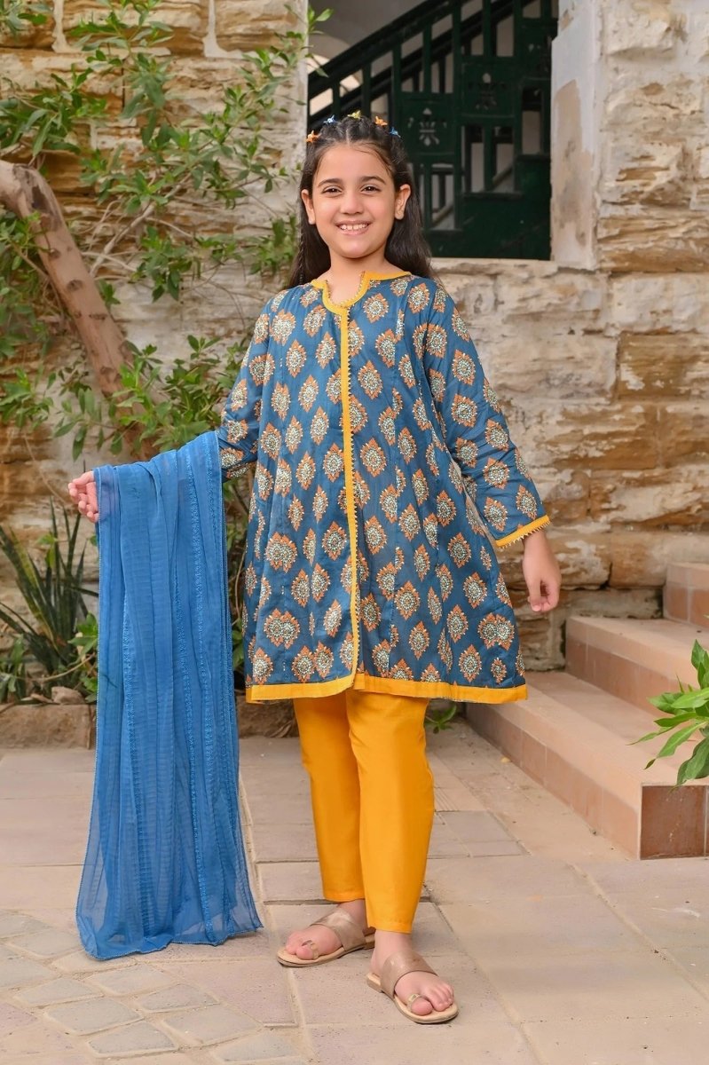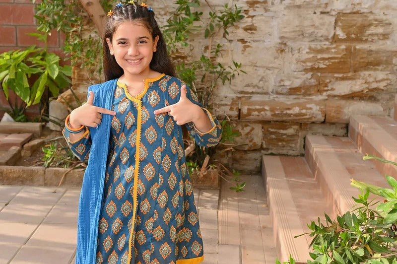 Amna Khadija 3 Piece Gurya Eid Milan - Girls Party Time this Bari Eid D-04 Teal