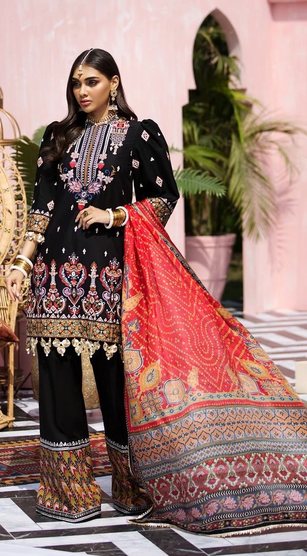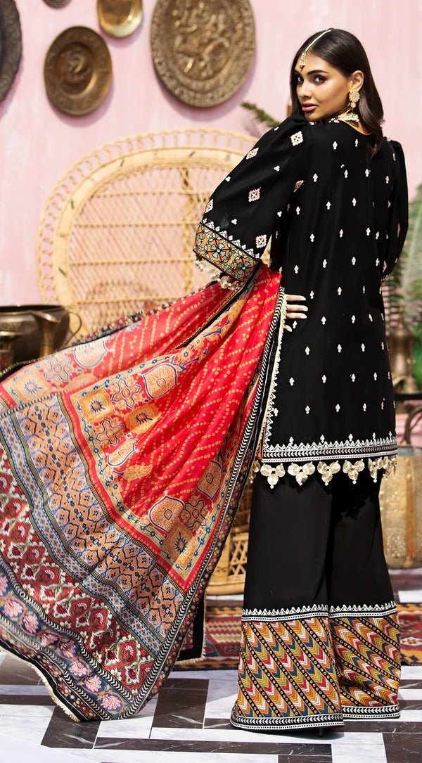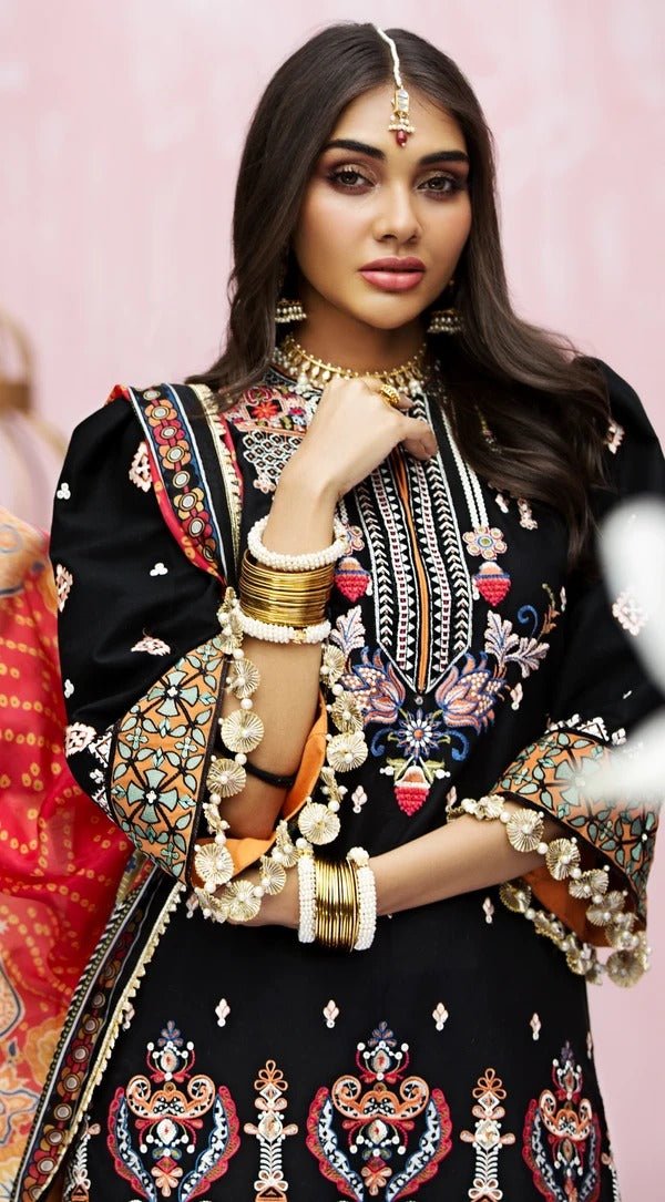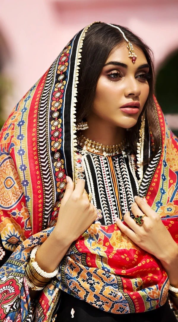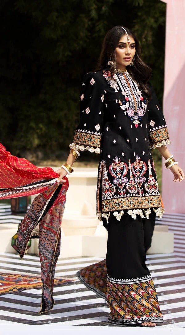 2. Unstitched suits include fabric and patches only as mentioned in the description above (not Embellishments e.g. tassels etc).