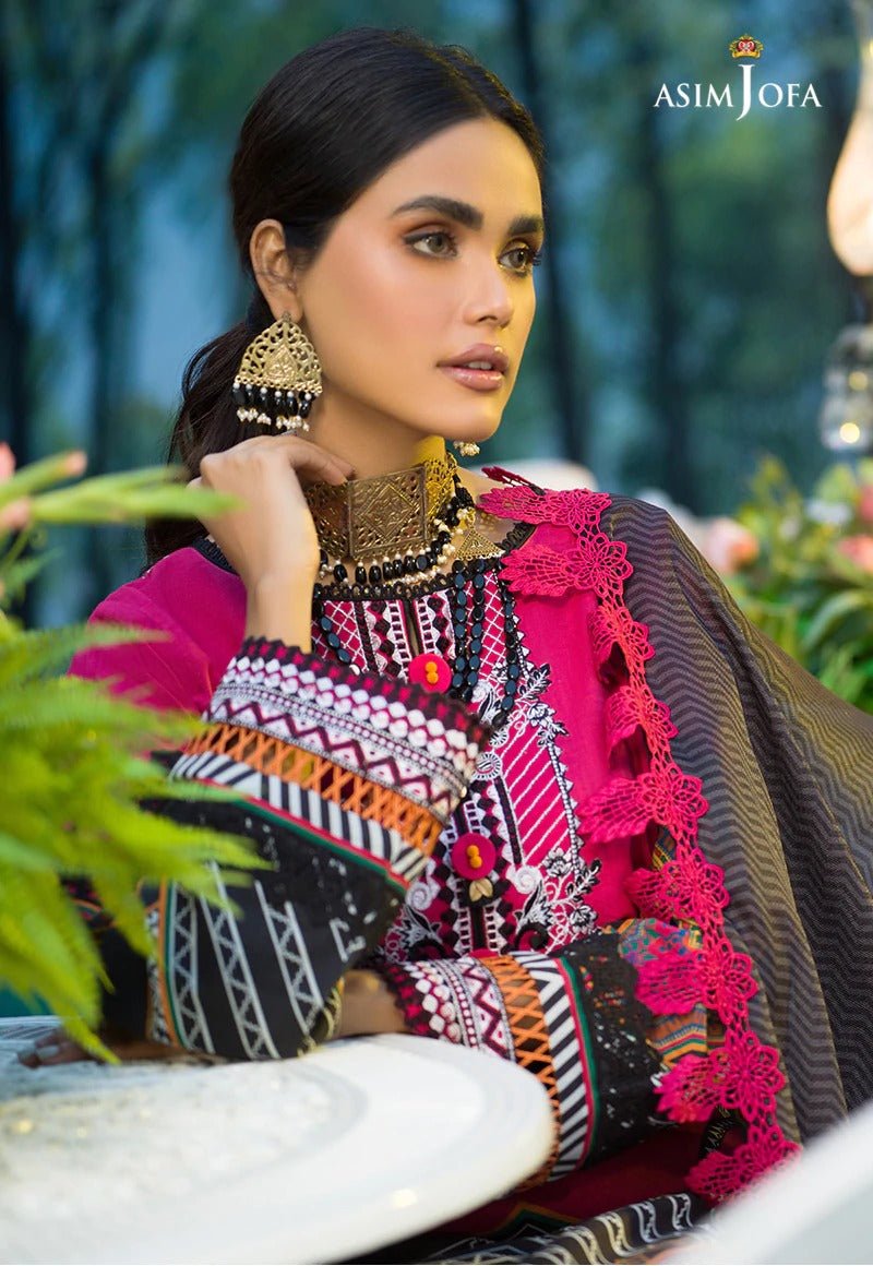 Asim Jofa 2 Piece Printed Suit - AJPR-20 MAGENTA
