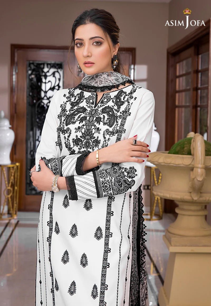 Asim Jofa 3 Piece Unstitched Embroidered Lawn Suit - AJAE-03