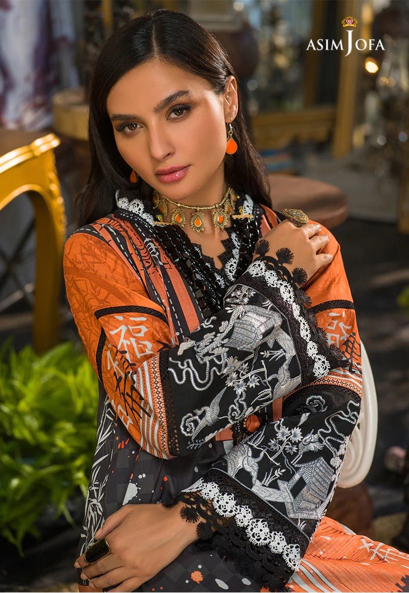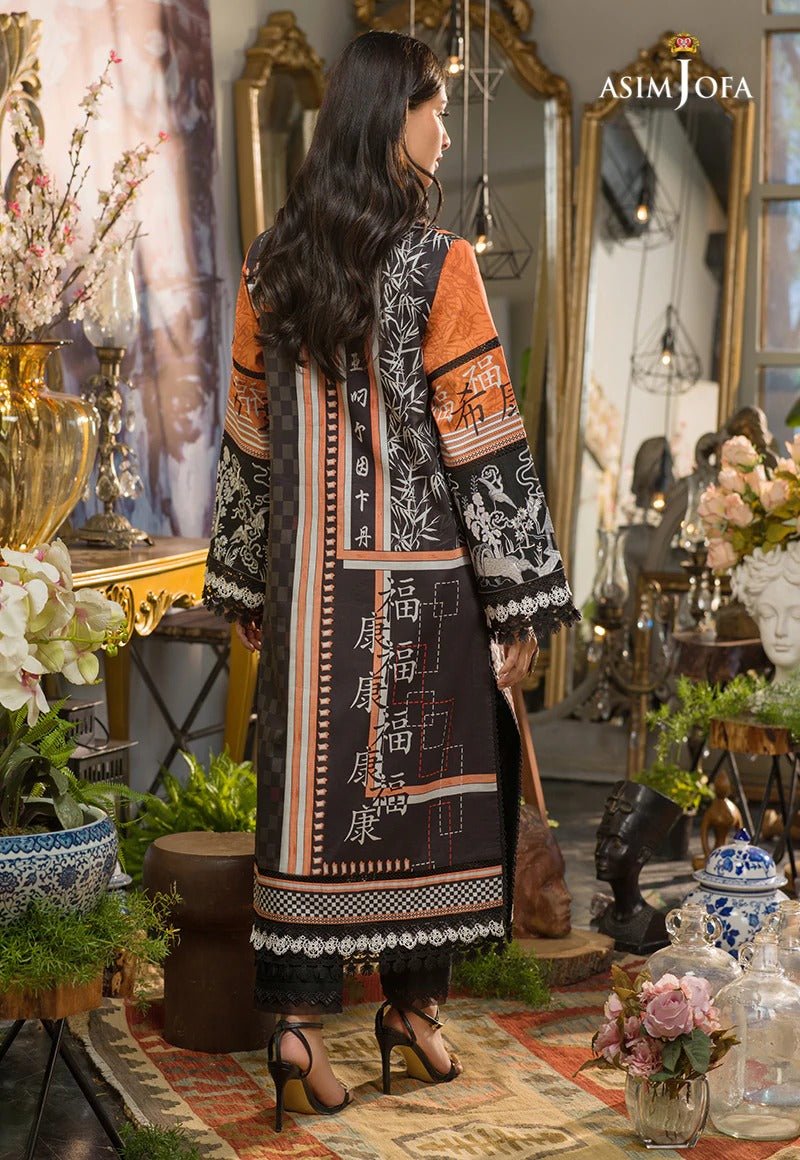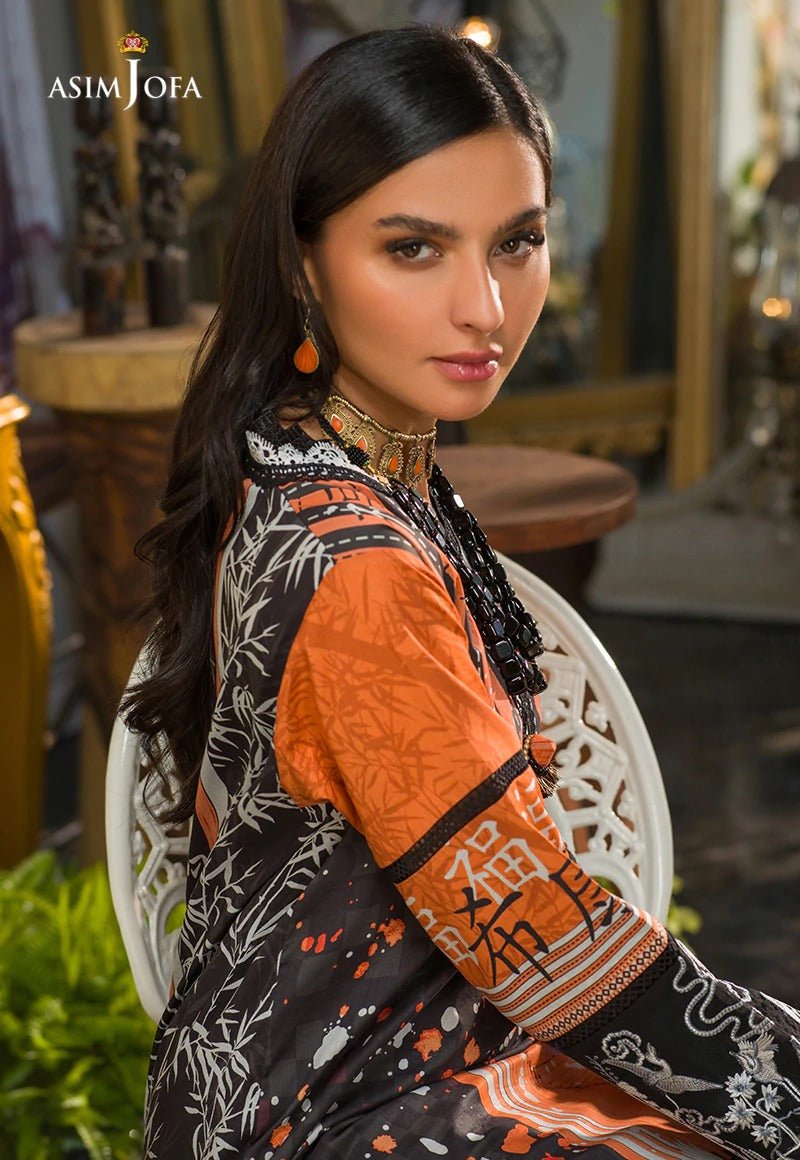 Asim Jofa 1 Piece Printed Suit - AJPR-29 BURNT ORANGE AND BLACK