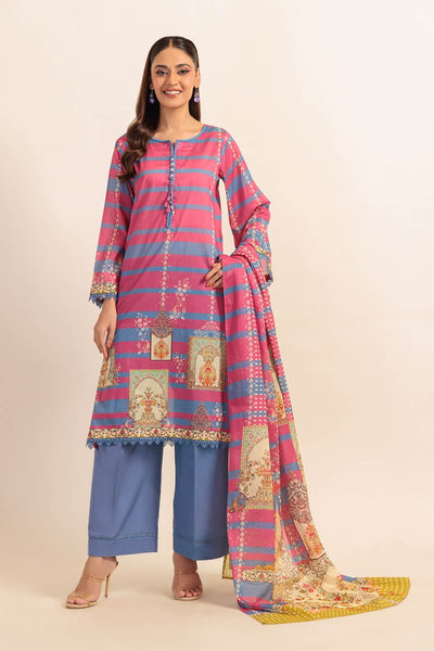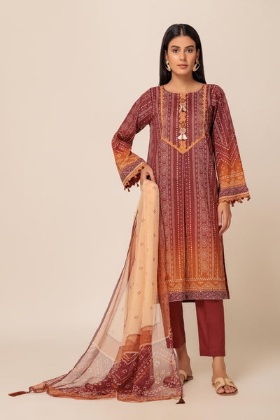 Ready To Wear Bonanza 3 Piece Digital Printed Lawn Suit - 1S24P3P568-Barberry