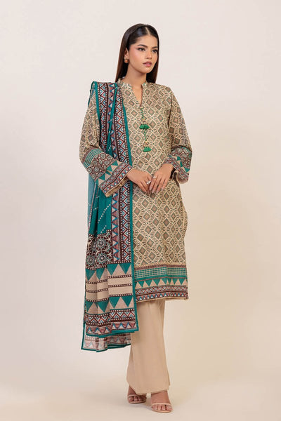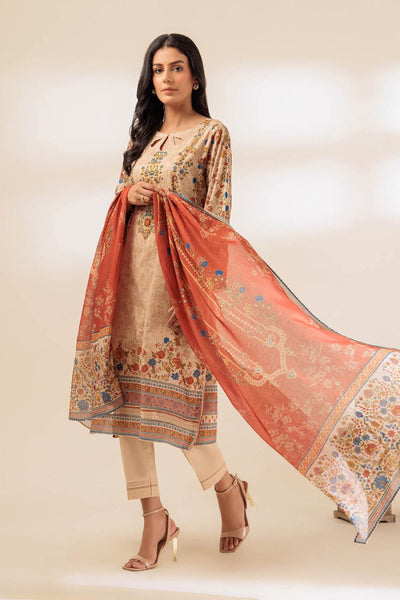 Ready To Wear Bonanza 3 Piece Digital Printed Lawn Suit - 1S24P3P043-L-BEIGE