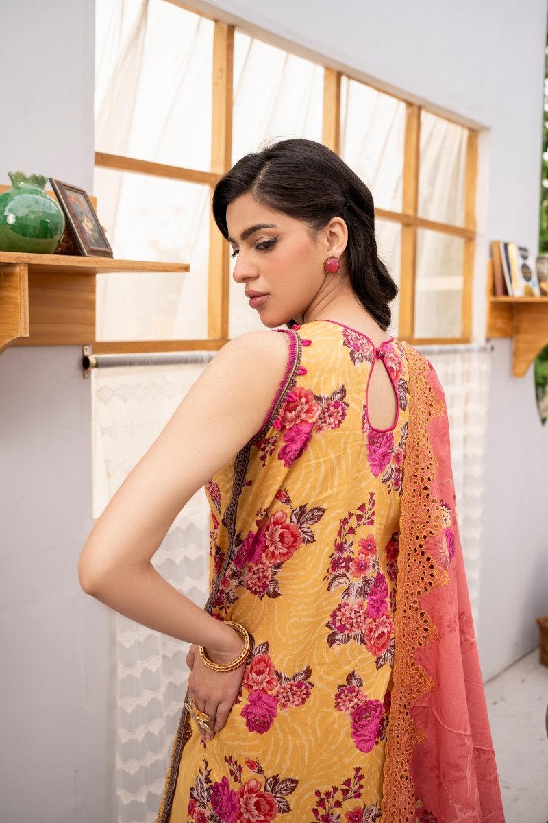 Printed Front with Schiffli Embroidered Daman (Full Sleeves)