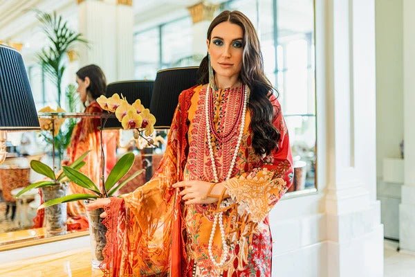 2. Unstitched suits include fabric and patches only as mentioned in the description above (not Embellishments e.g. tassels etc).