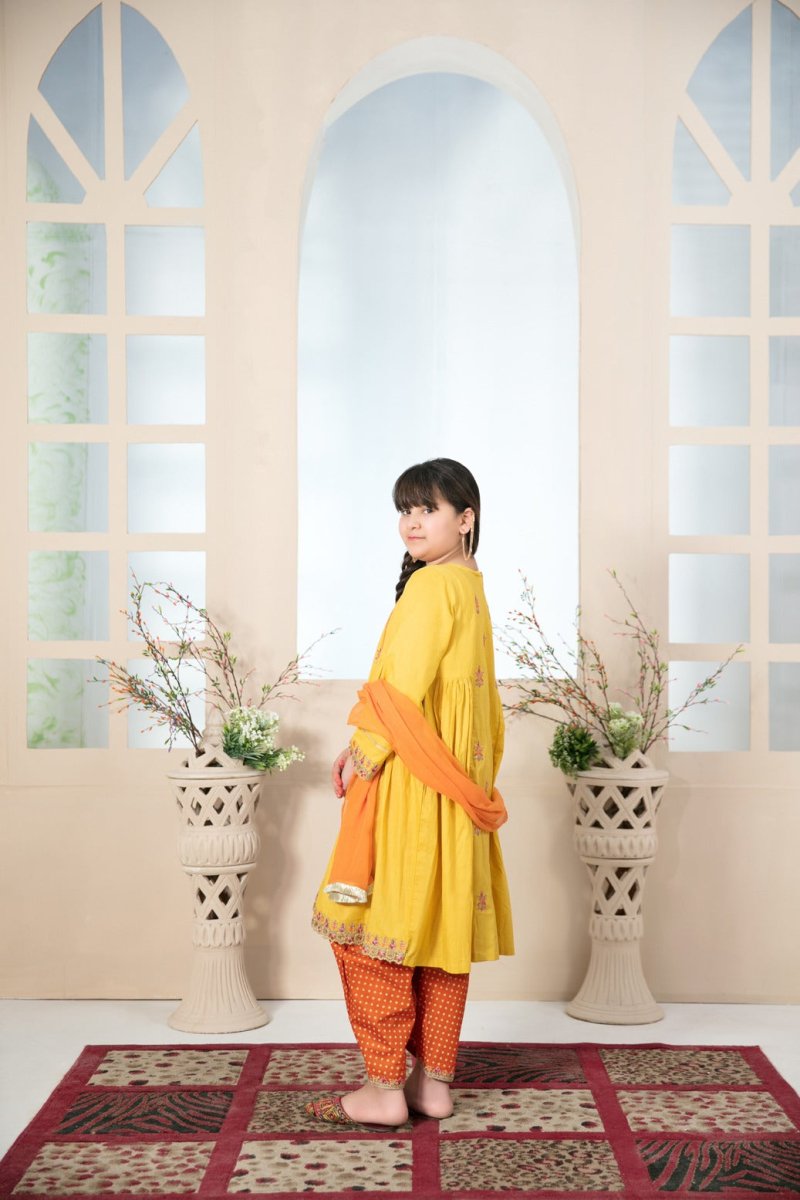 Tawakkal Fabrics Kid’s Collection 3 Piece Fancy Heavy Embroidered Suit - D-7005