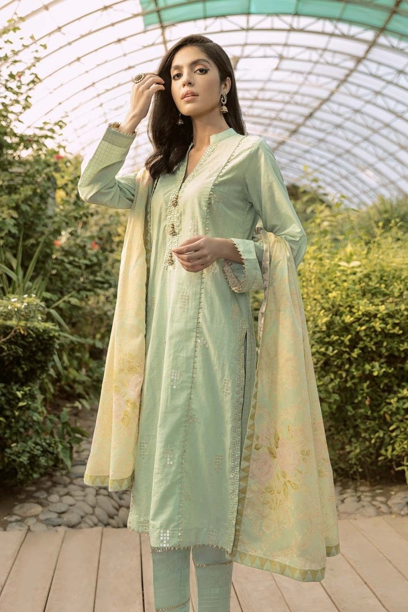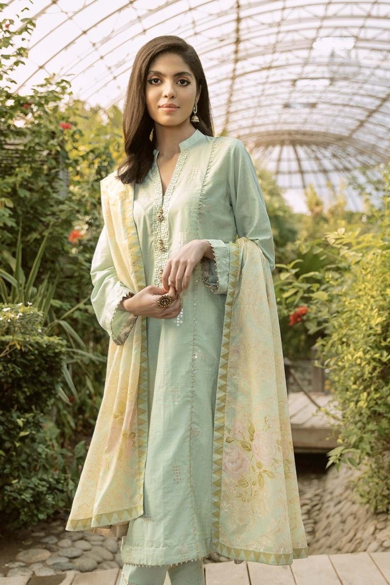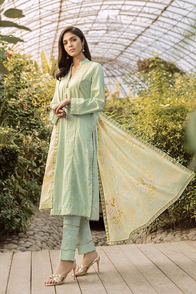 Gul Ahmed 3PC Festive Eid Embroidered Suit With Gold & Lacquer Printed Dupatta SP-41