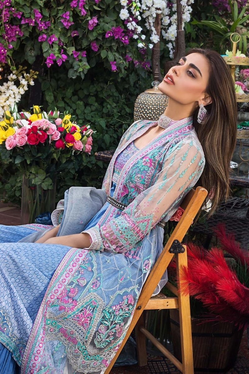 - Sequins Embroidered Net Shirt Front, Shirt Back & Sleeves with Sequins Embroidered Border for Front & Back – 4.67 meters
