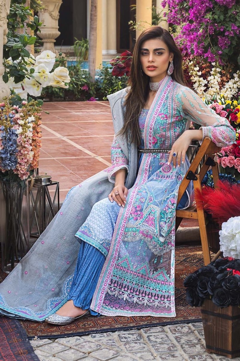Gul Ahmed 3PC Unstitched Embroidered Suit With Cotton Net Dupatta - FE-12063-MAHRUKH