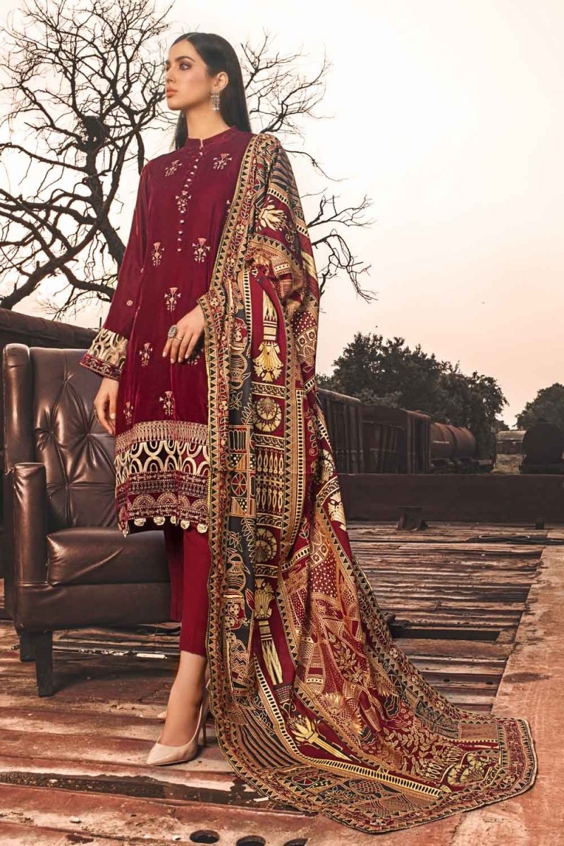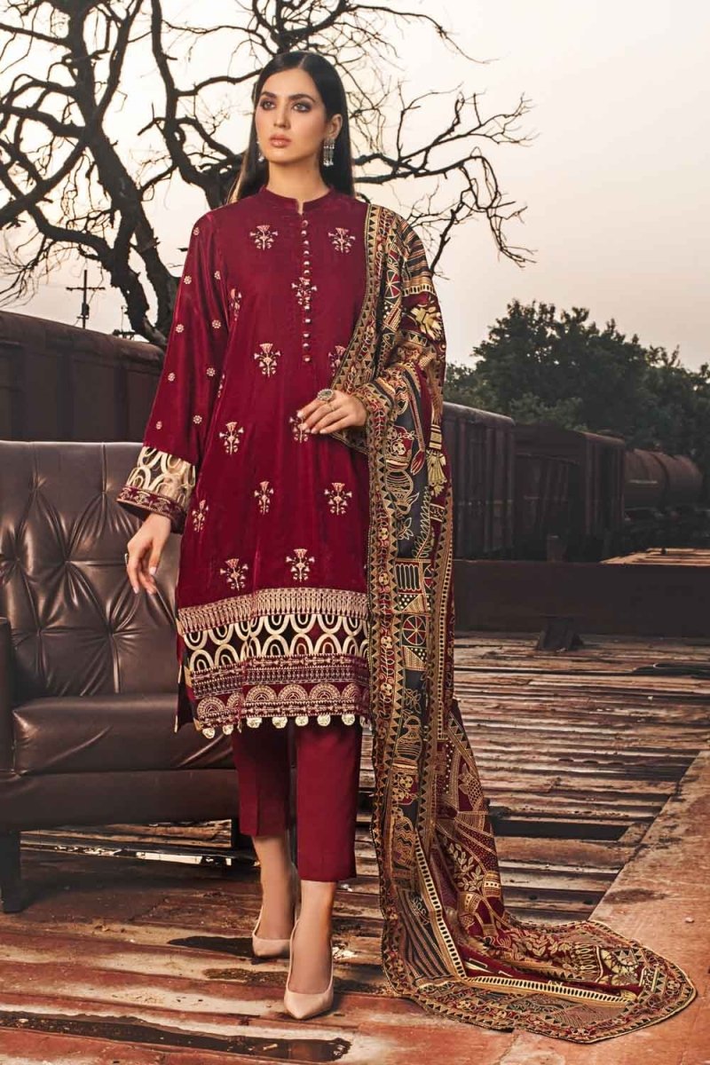 Gul Ahmed 3PC Unstitched Velvet Embroidered Suit WV-12006