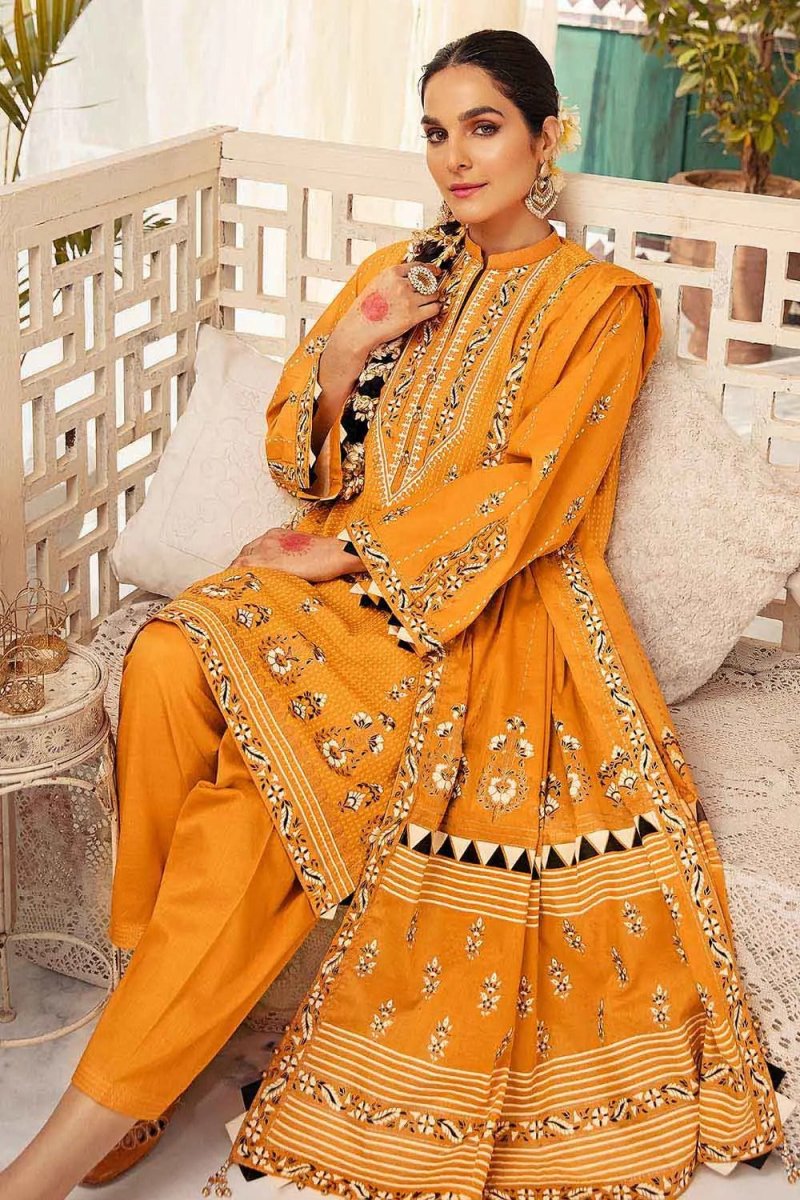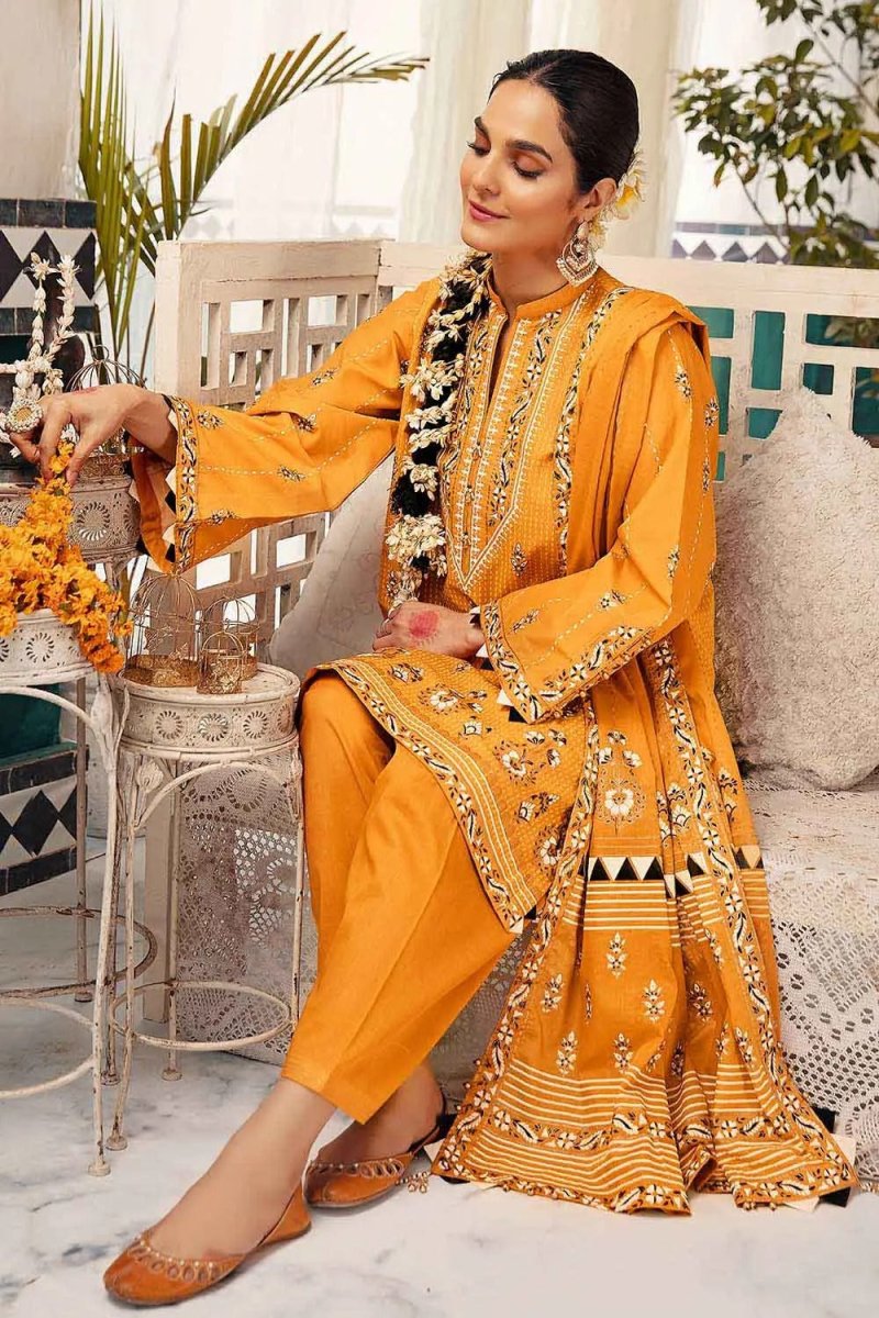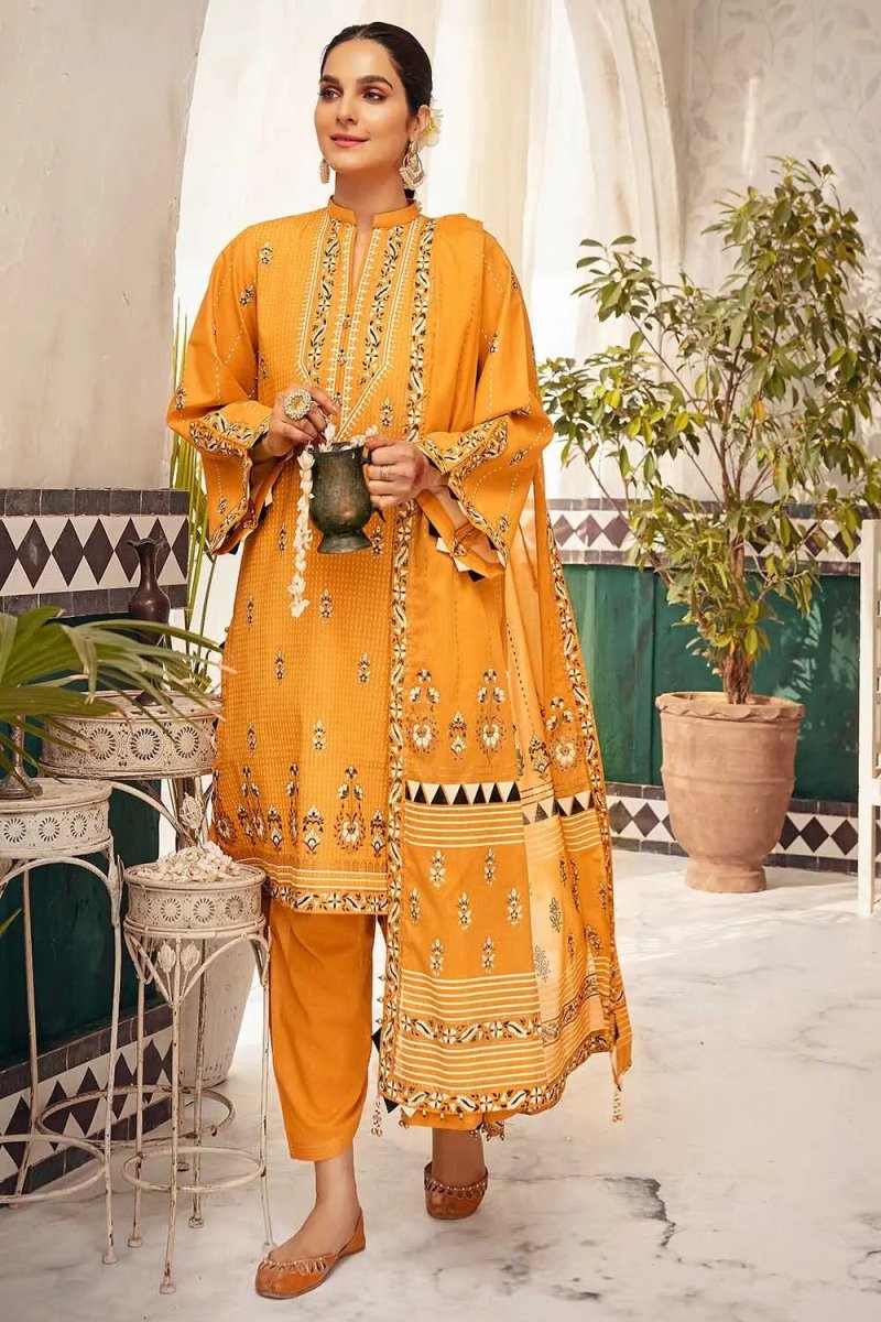 Gul Ahmed 3PC Unstitched Gold and Lacquer Printed Lawn Suit CL-22128