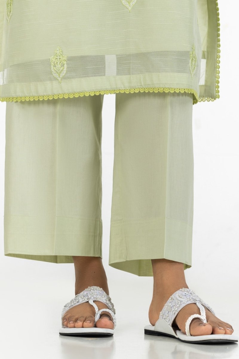 Details: Embroidered Suit with a Round-Neckline with delicate lace on the neckline and sleeves.