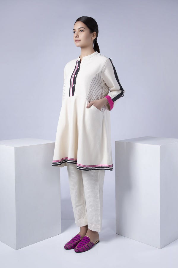 Ready to Wear Winter Khaadi Short White Fusion Top TF-19403