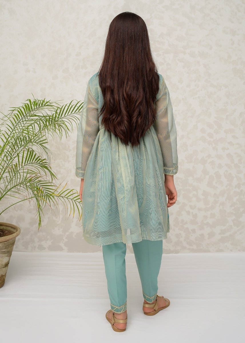Modest Stitched Kid’s Green Maysuri Frock - 9025