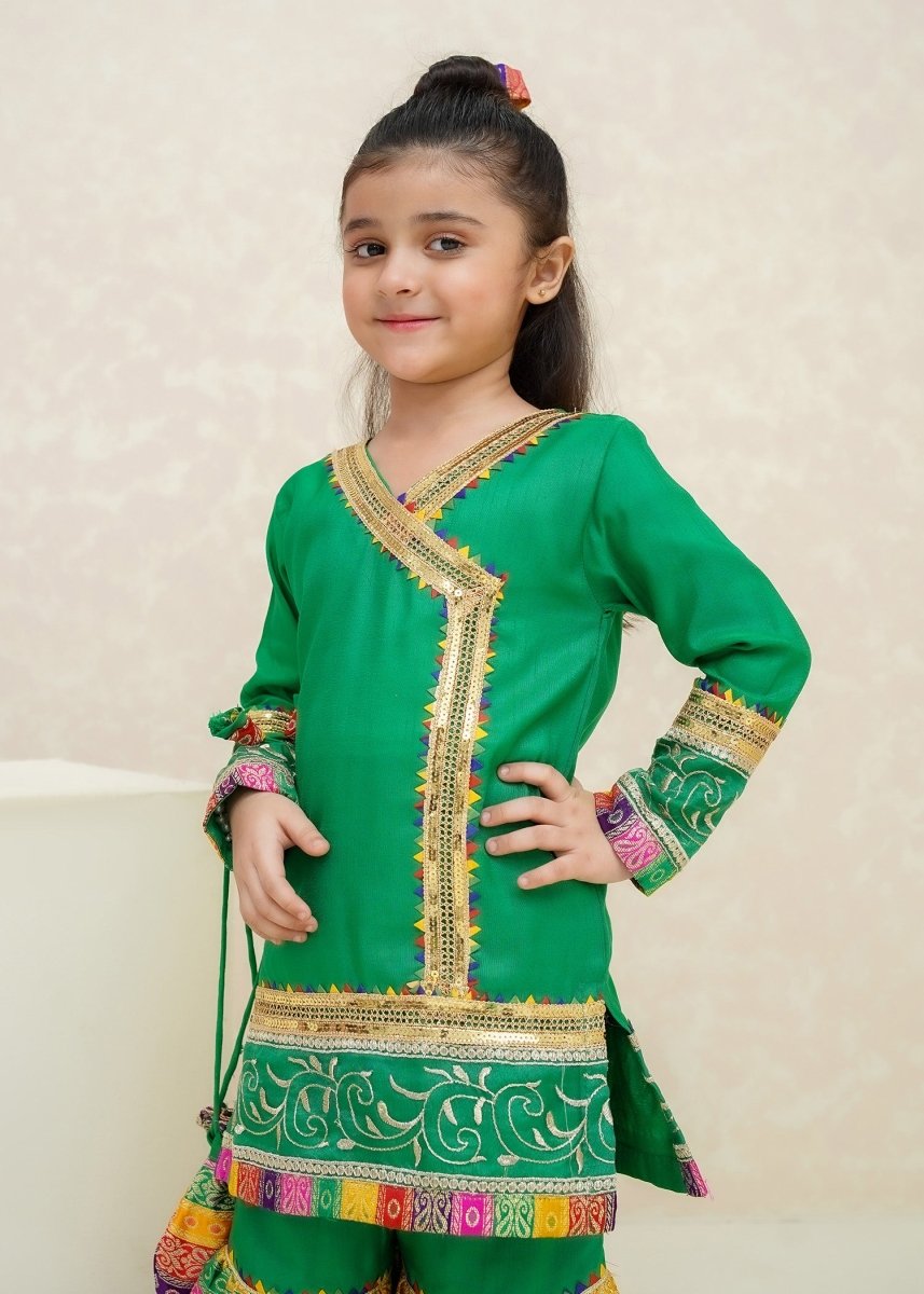 Modest Stitched Kid’s Mah e Noor Green - 8715