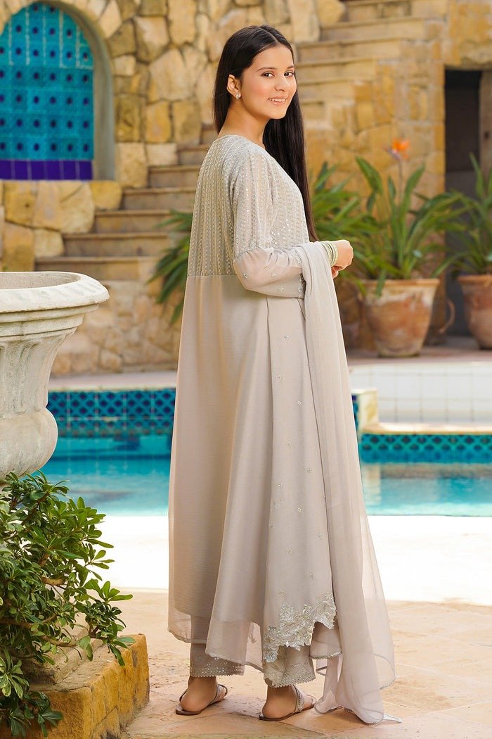 • TOP: Grey Chiffon Maxi with Embroidery and Malai Crepe Lining