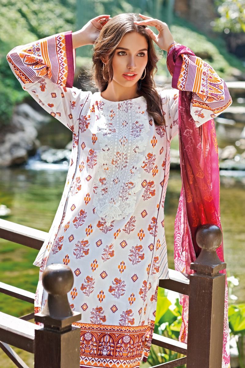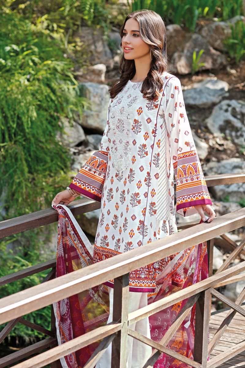 Gul Ahmed 3 PC Unstitched Embroidered Lawn Suit with Silk Dupatta AS-19