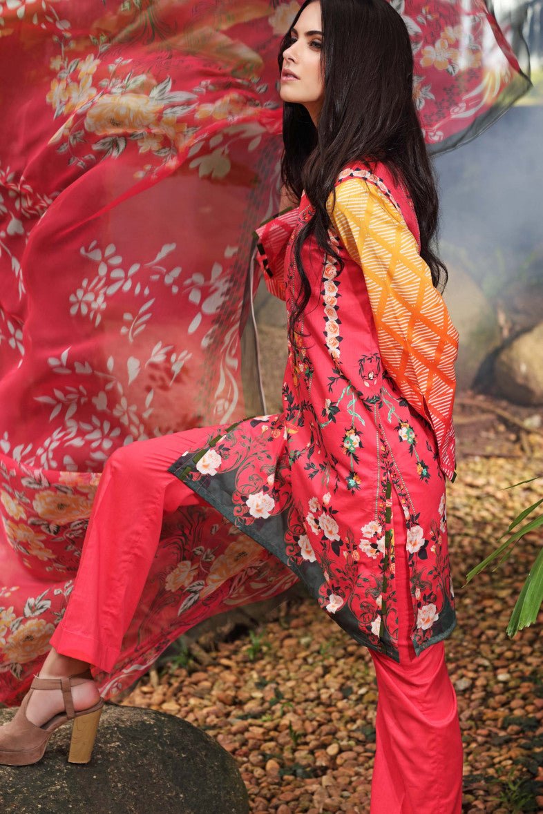 Gul Ahmed Red Blended Chiffon BMSC-18