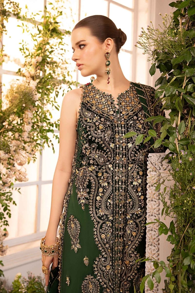 Maria. B 3 Piece Unstitched Embroidered Organza Suit - BD-2904-EMERALD GREEN