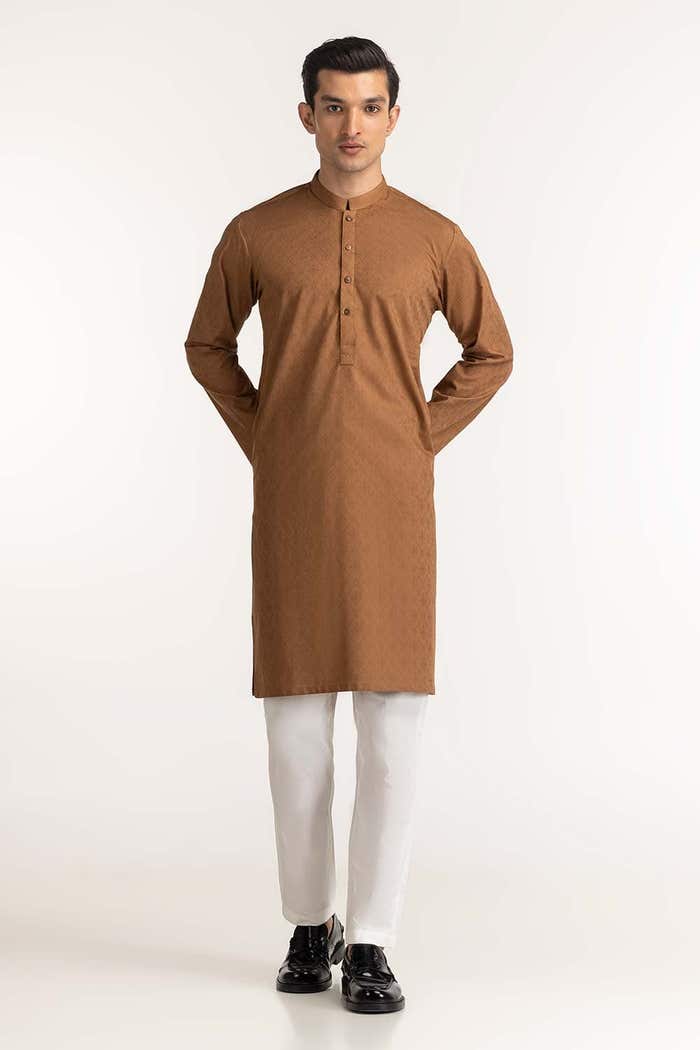 Gul Ahmed Ready to Wear Camel Basic Kurta KR-PLN24-029