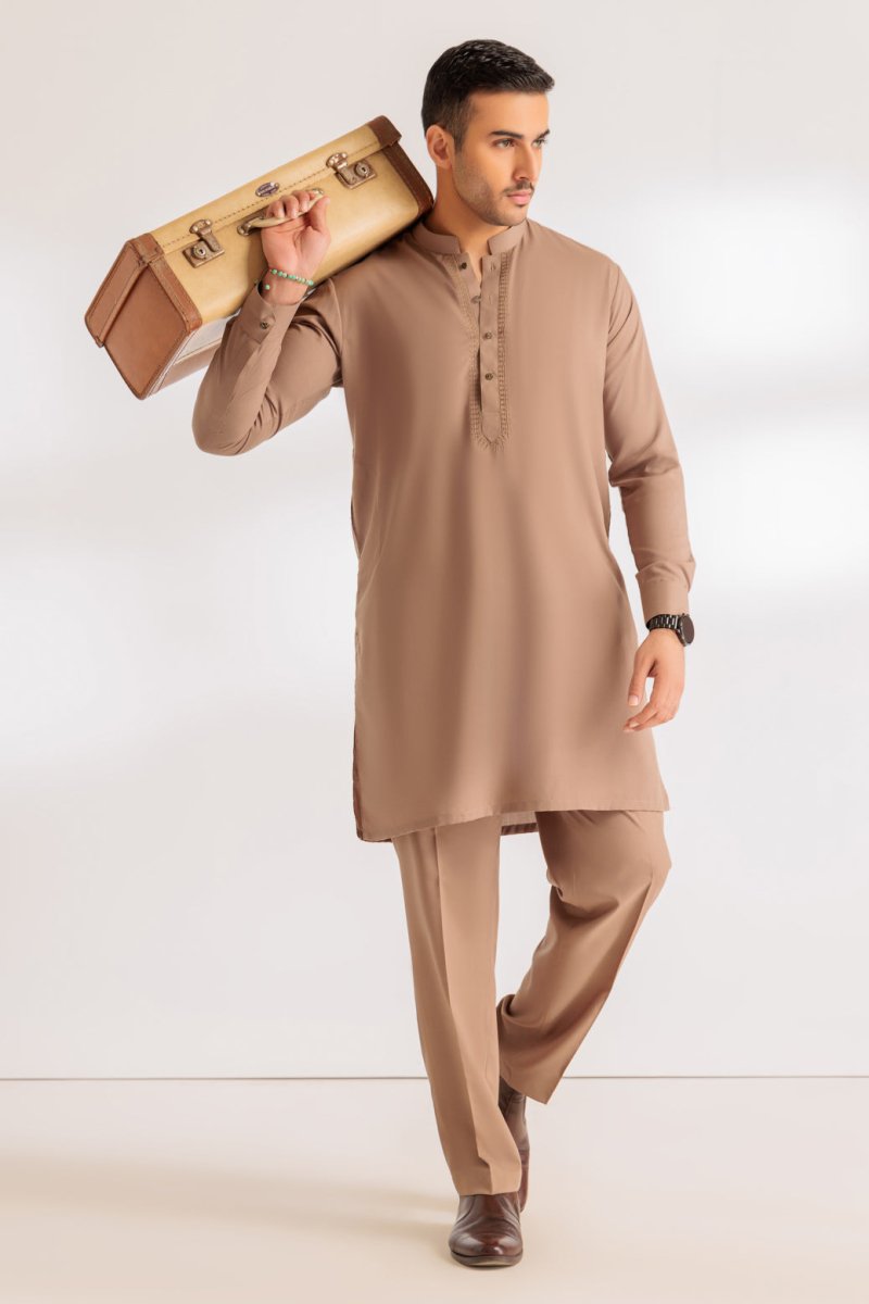 BONANZA MEN'S 2 PIECE ALMOND-BLENDED-KURTA TROUSER - KSR24-020