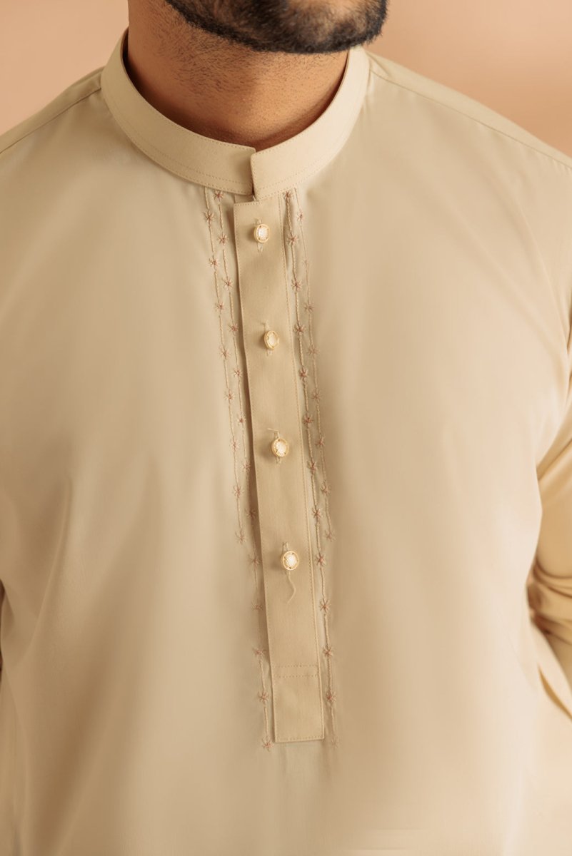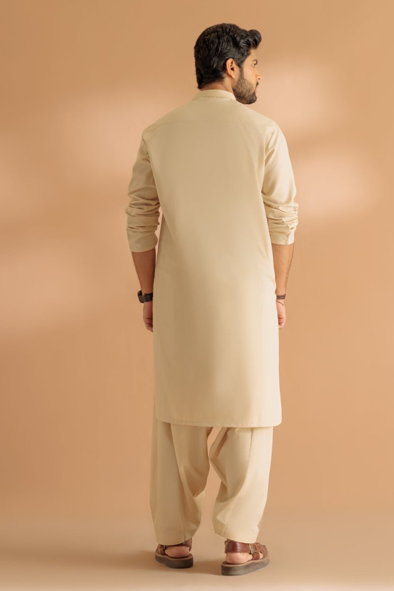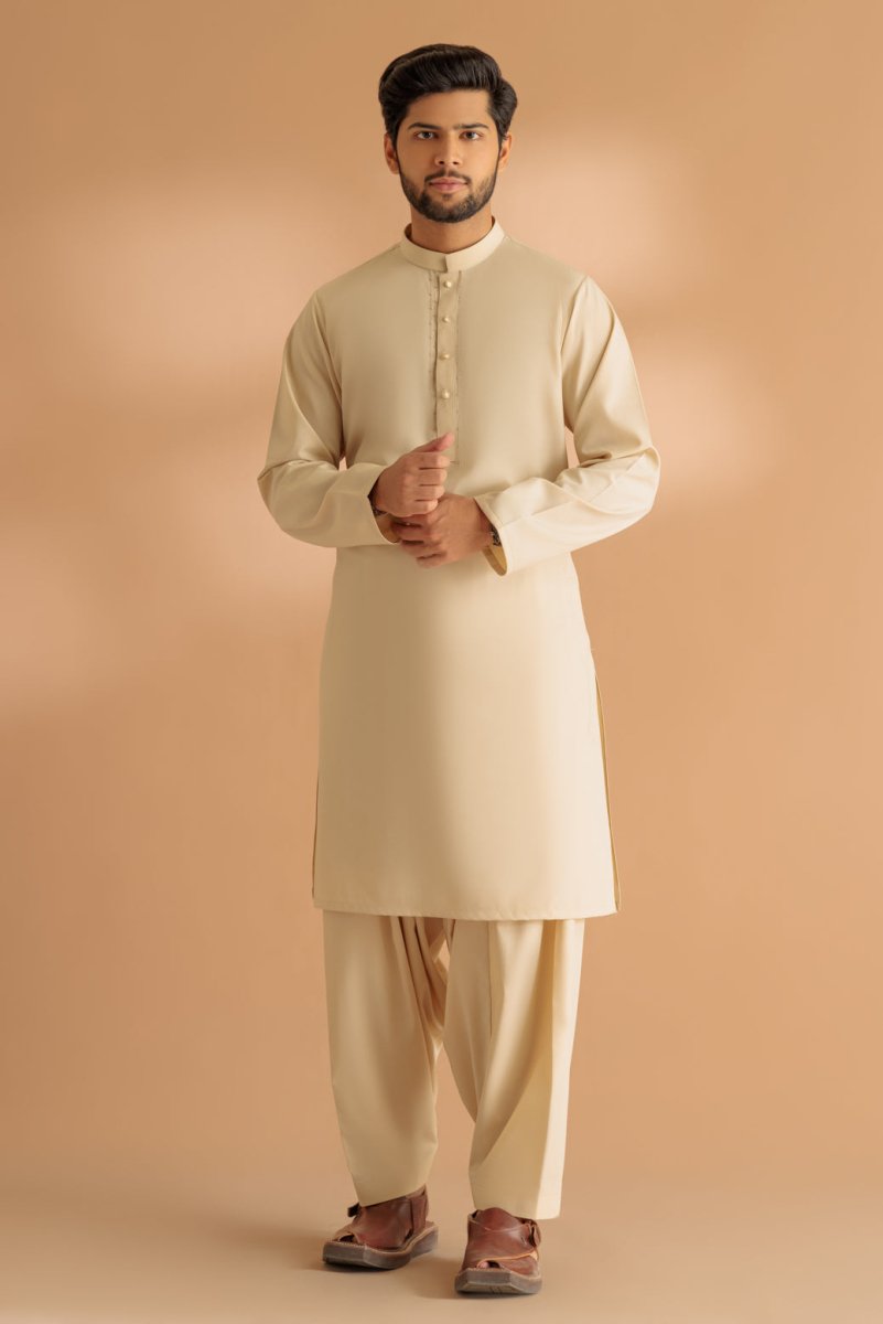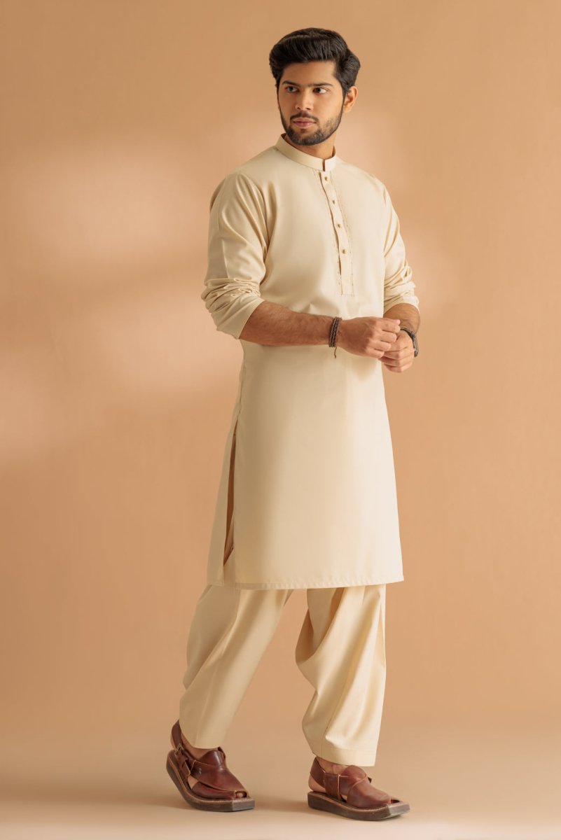 BONANZA MEN'S 2 PIECE BEIGE-BLENDED-KURTA SHALWAR - KSRS24-037