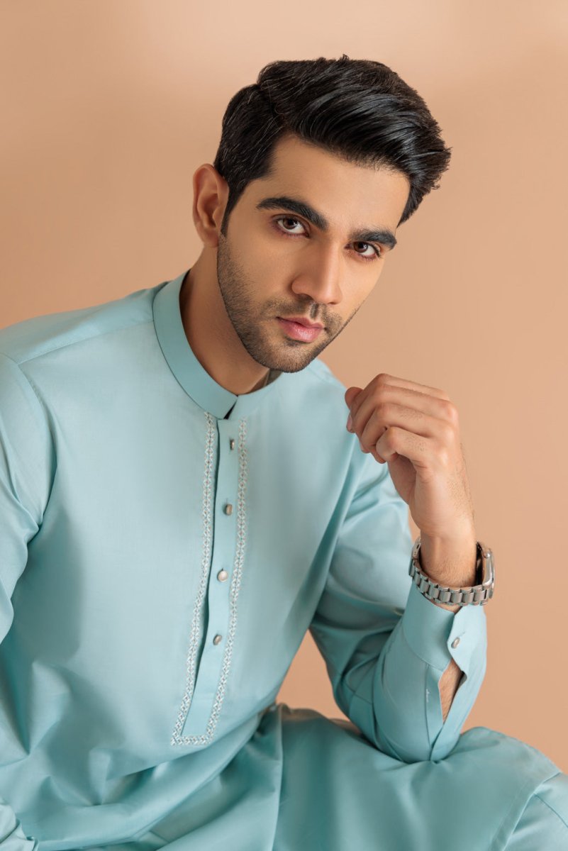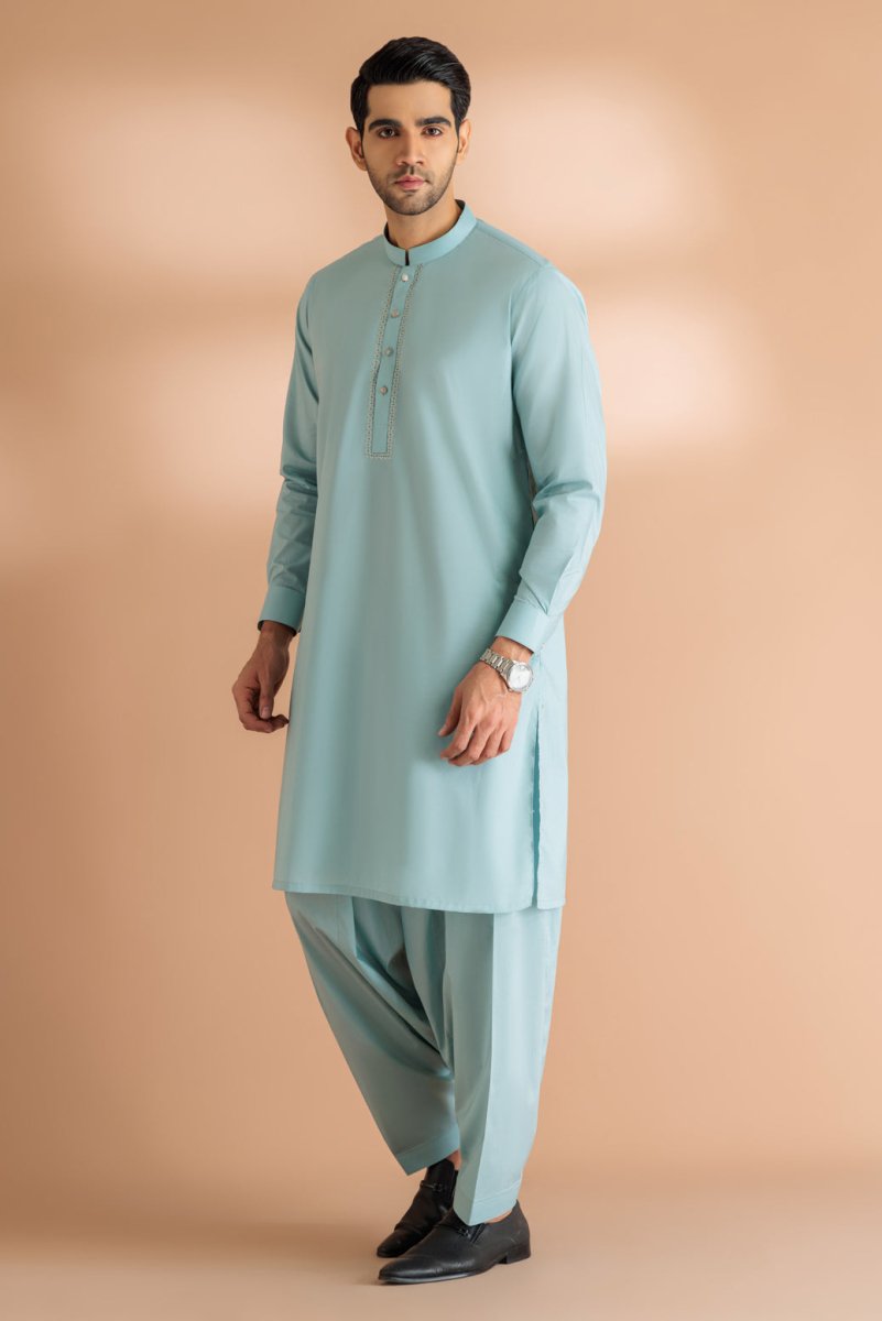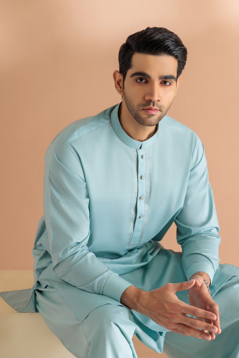 BONANZA MEN'S 2 PIECE SKY BLUE-COTTON-KURTA SHALWAR - KSRS24-031