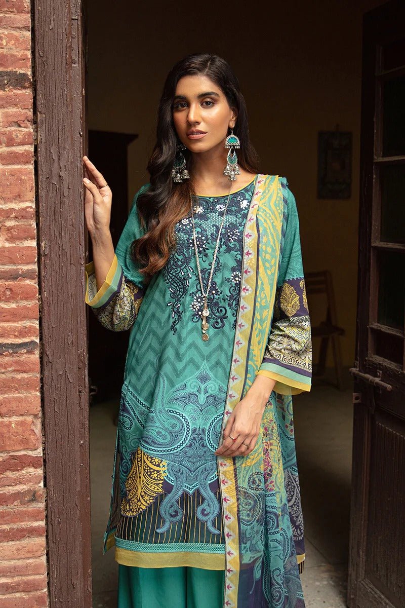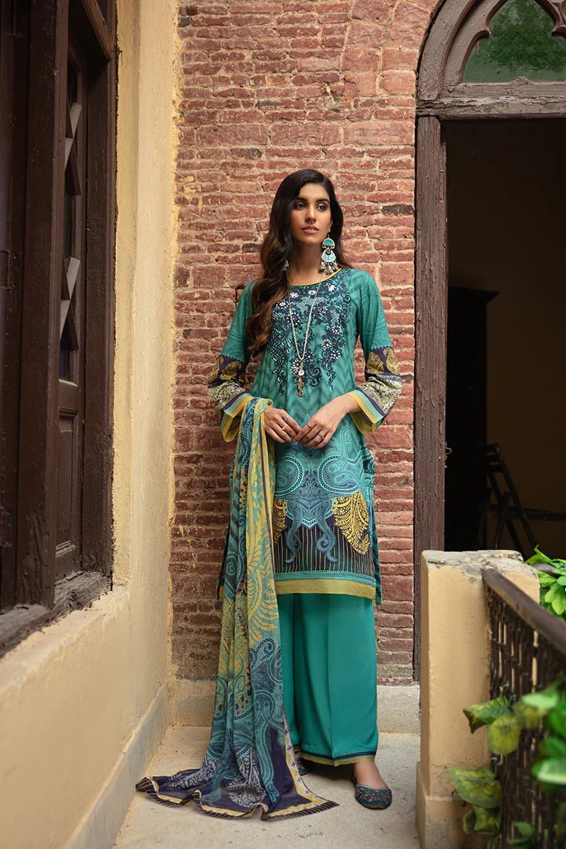 Rang Rasiya 3 Piece Stitched Embroidered digitally printed Suit D-633 Blueberry