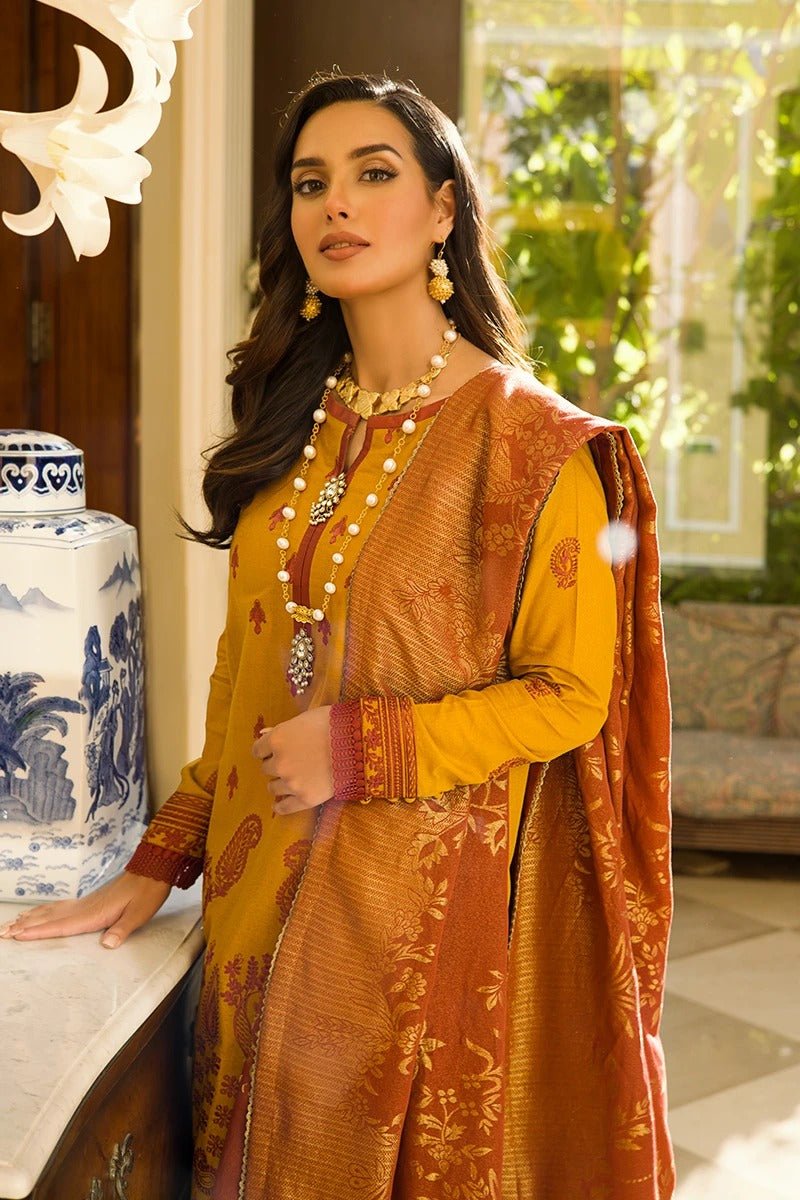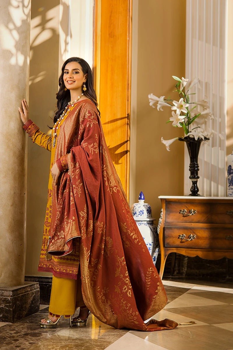 Rang Rasiya 3 Piece Stitched Embroidered Dobby Linen Suit D-01 REGAL