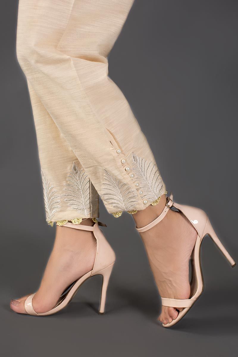 Gul Ahmed Embroidered Stitched Beige Trousers TR-19-72