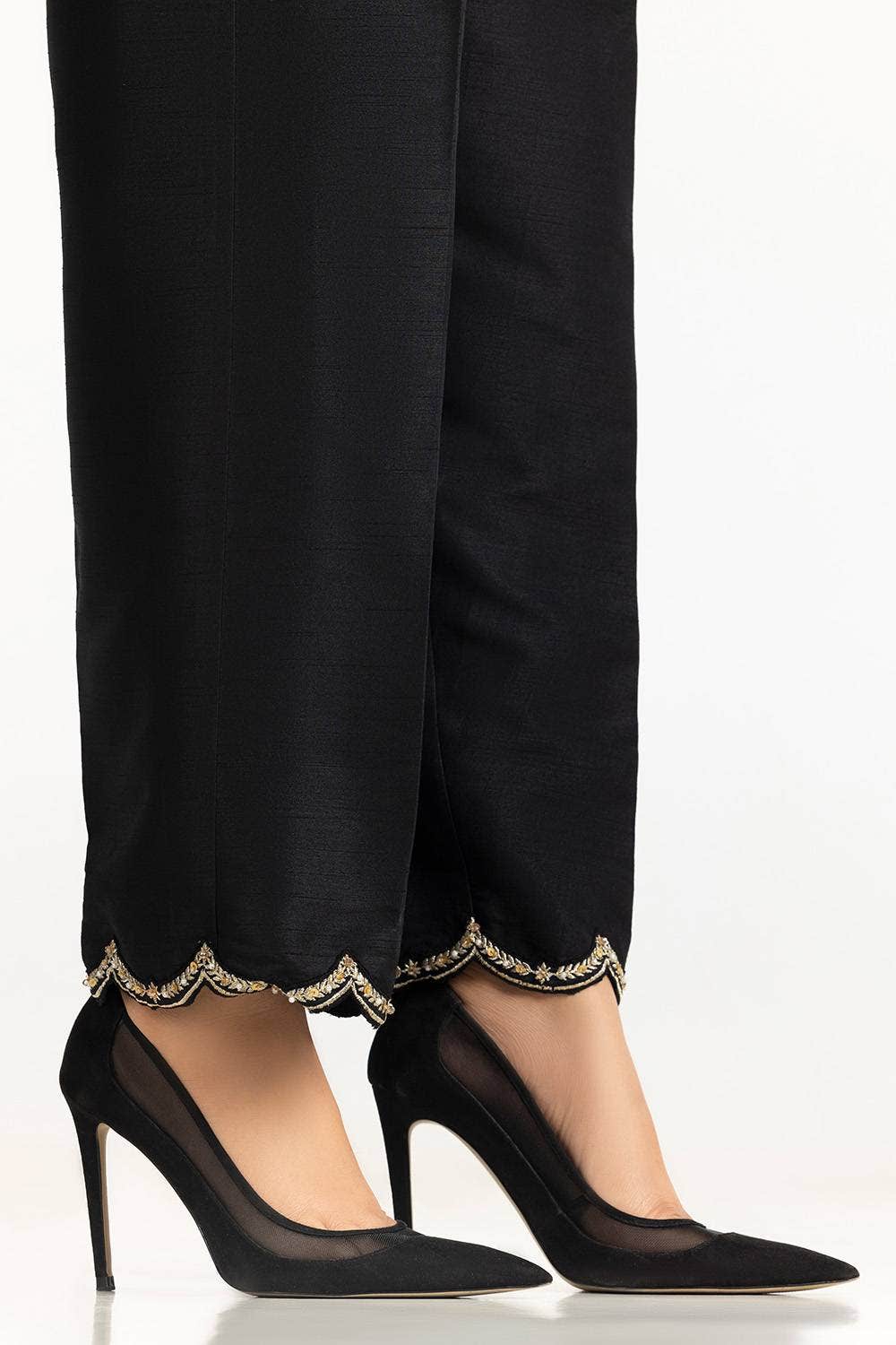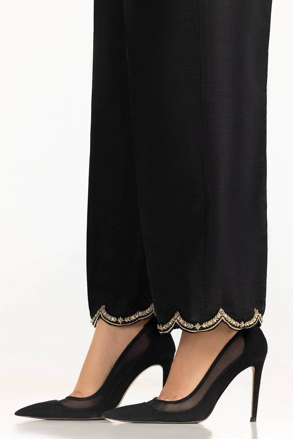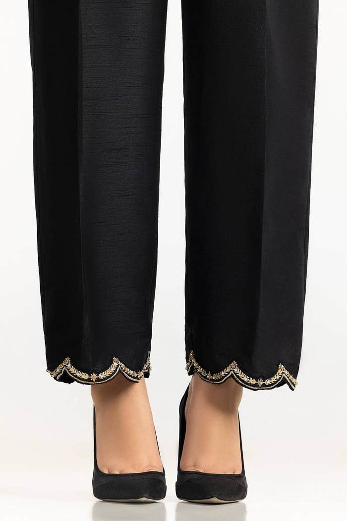 Gul Ahmed Stitched Rawsilk Embroidered Trouser TR-24-25-Black