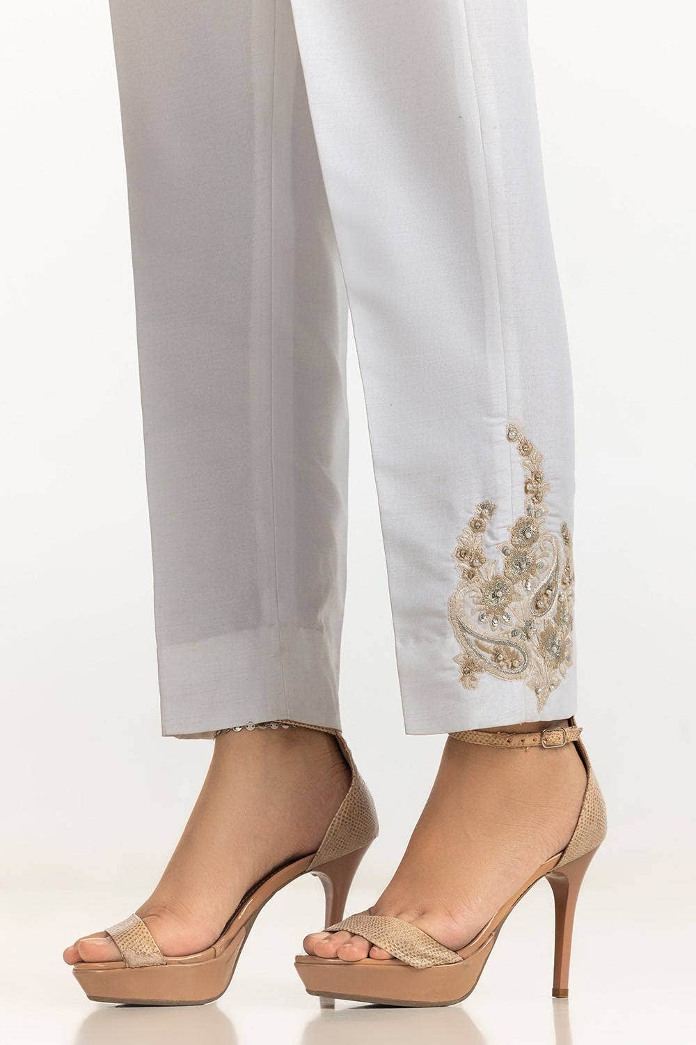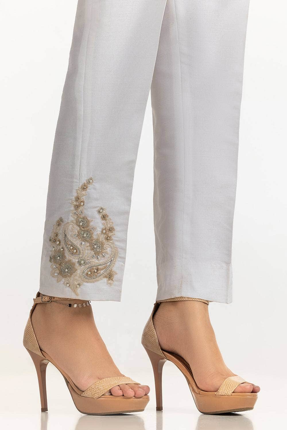 Gul Ahmed Stitched White Rawsilk Embroidered Trouser TR-24-30-White