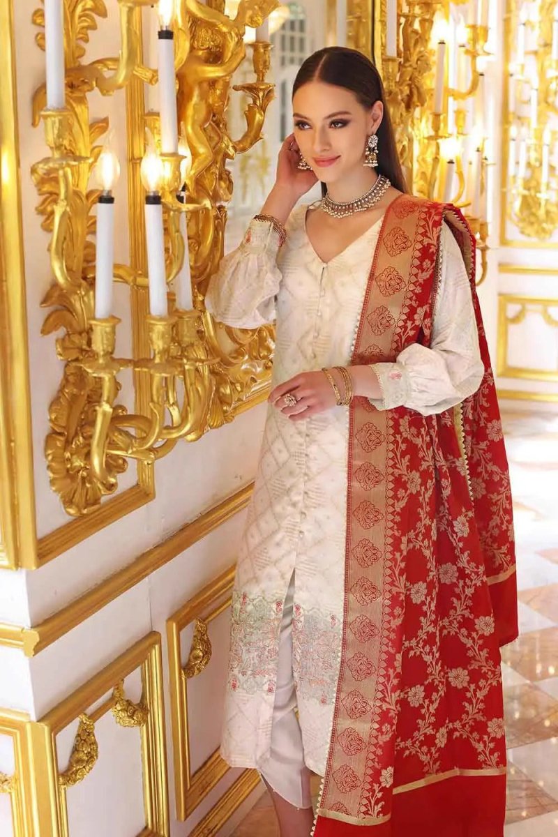 Gul Ahmed 3PC Unstitched Jacquard Embroidered Suit with Banarsi Jacquard Dupatta PRW-22010