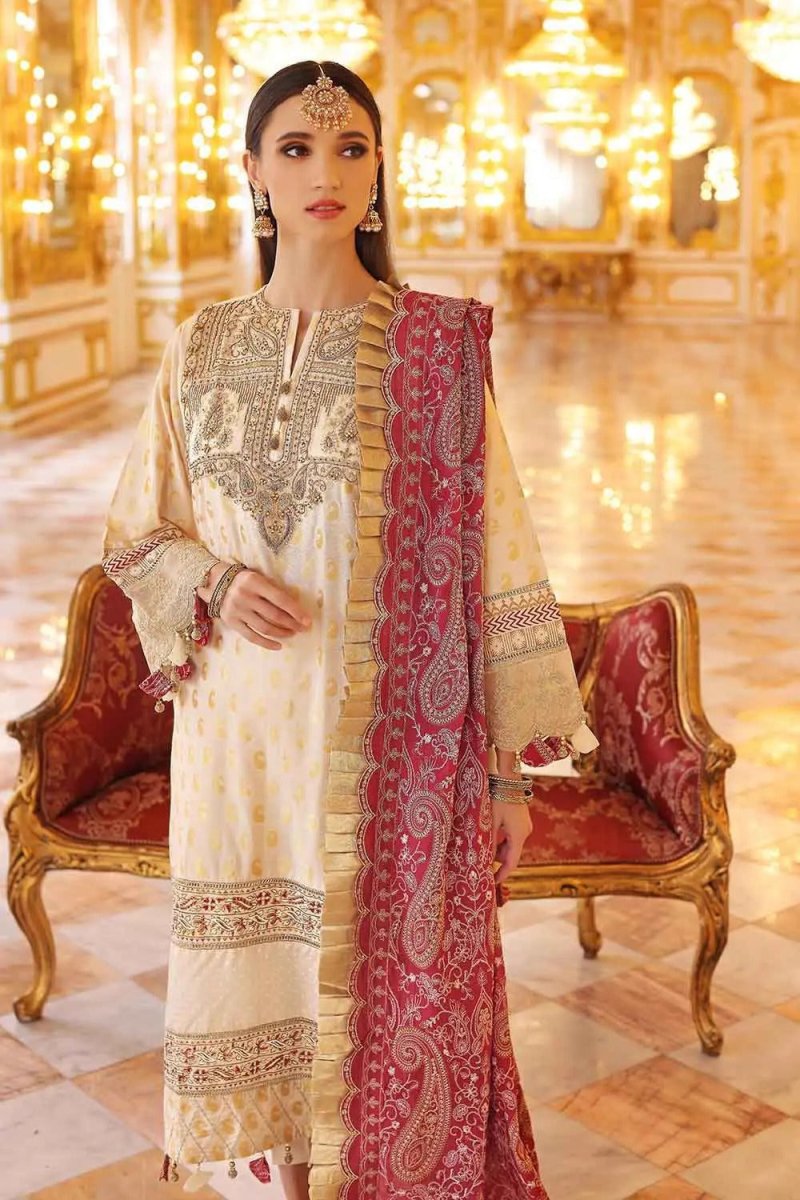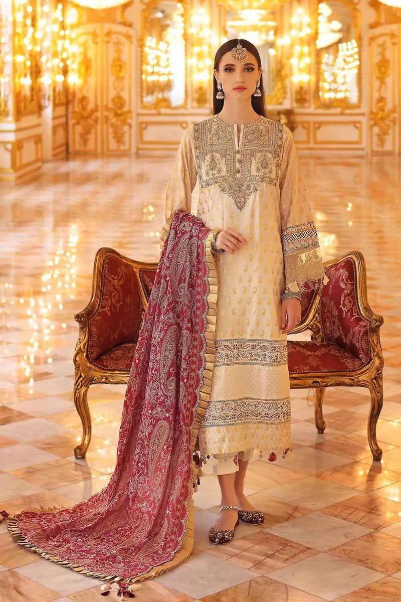 Gul Ahmed 3PC Unstitched Jacquard Embroidered Suit with Paper Cotton Dupatta PRW-22005
