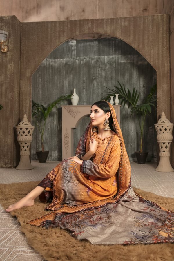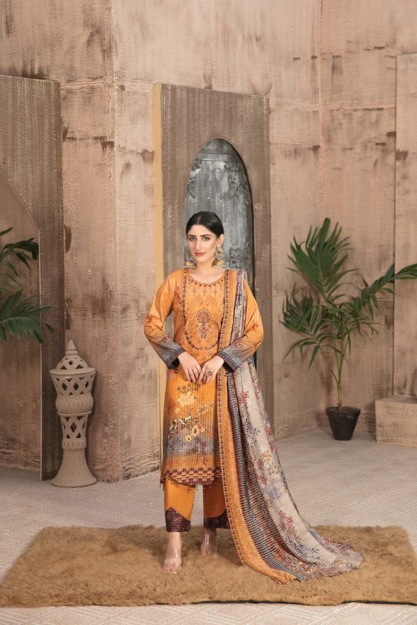 Tawakkal Fabrics 3 Piece Stitched Embroidered Digital Printed Staple Linen with Mirror Work Suit D-7692