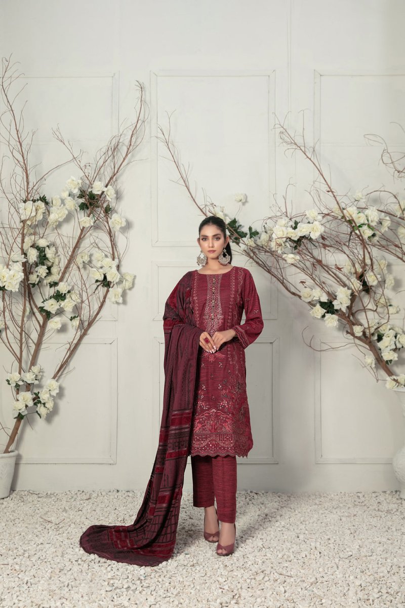 Tawakkal Fabrics 3 Piece Stitched Fancy Embroidered 2-tone Leather Suit D-7843